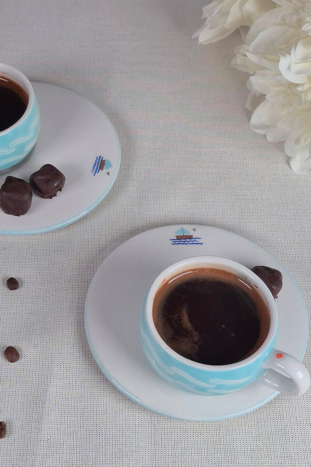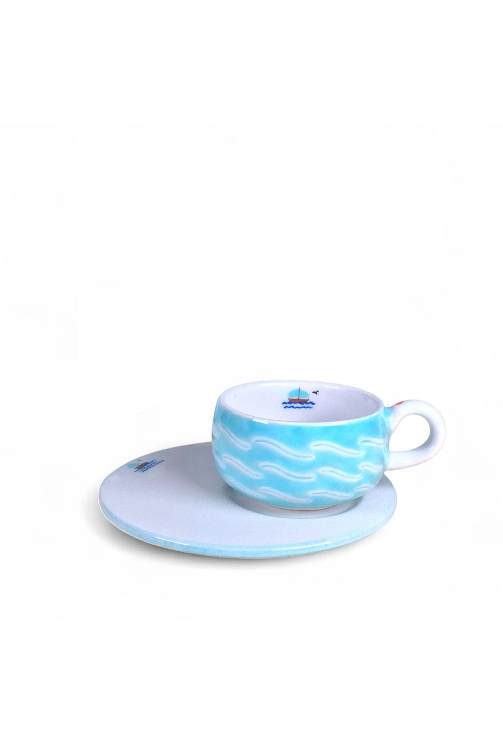 Fincanın içine incelikle işlenmiş yelken motifleri, insanı uzak ufuklara çağırırken, dalgaların beyaz izleri huzurlu bir akışın simgesine dönüşür. Her bakışta denizin kokusu, her yudumda ufuktaki güneşin daveti ve gökyüzünün enginliği canlanır.