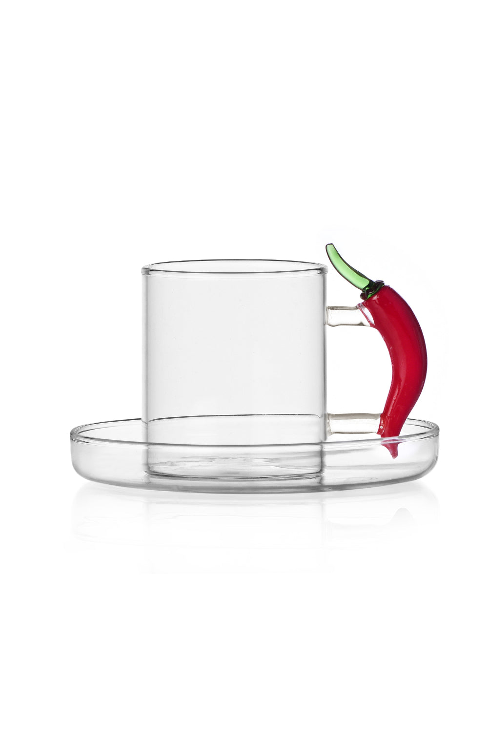 Vegetables Koleksiyonu Kırmızı Biber Figürlü Cam Kahve Fincanı