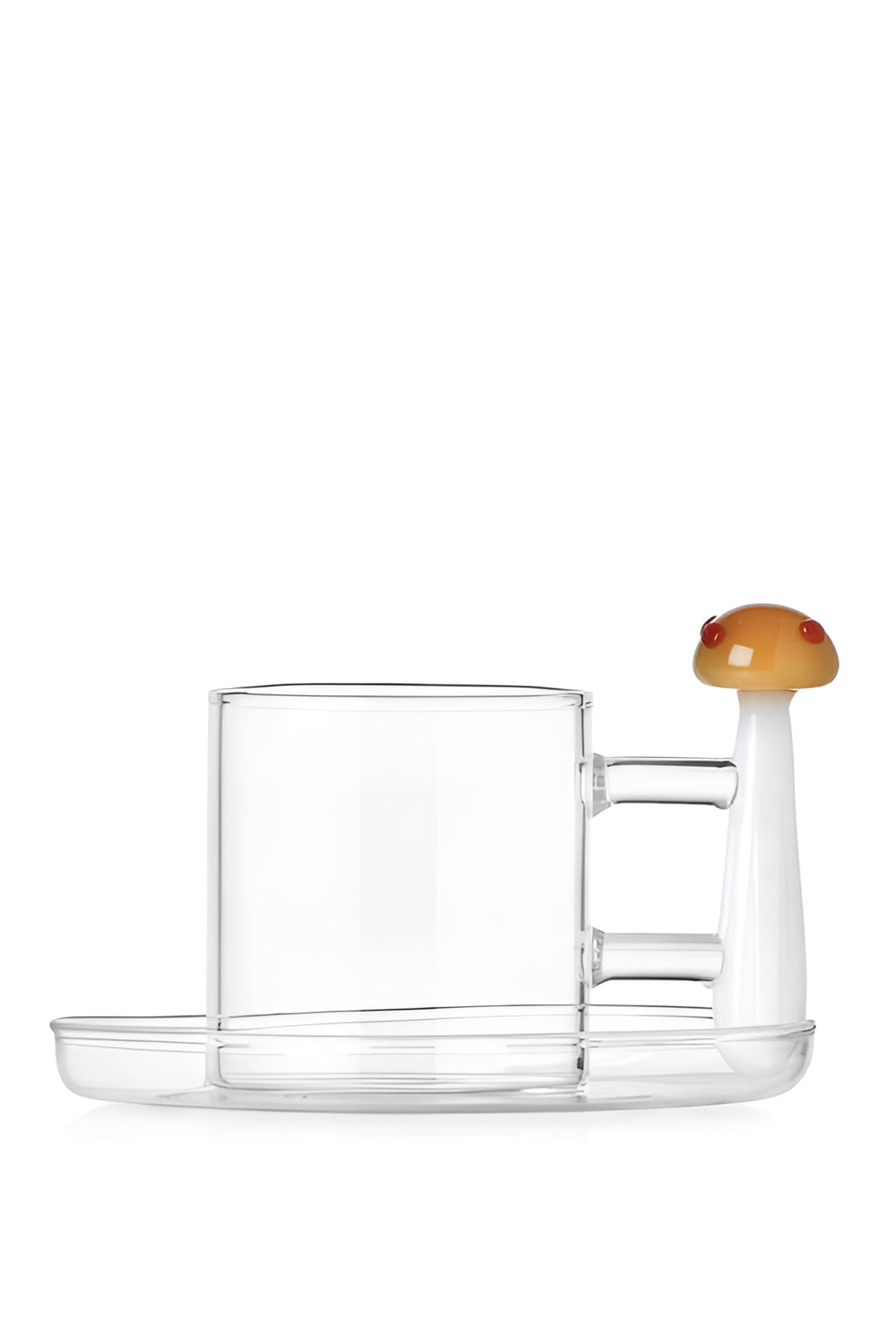 Amber Ve Kırmızı Noktalı Mantar Figürlü Cam Kahve Fincanı