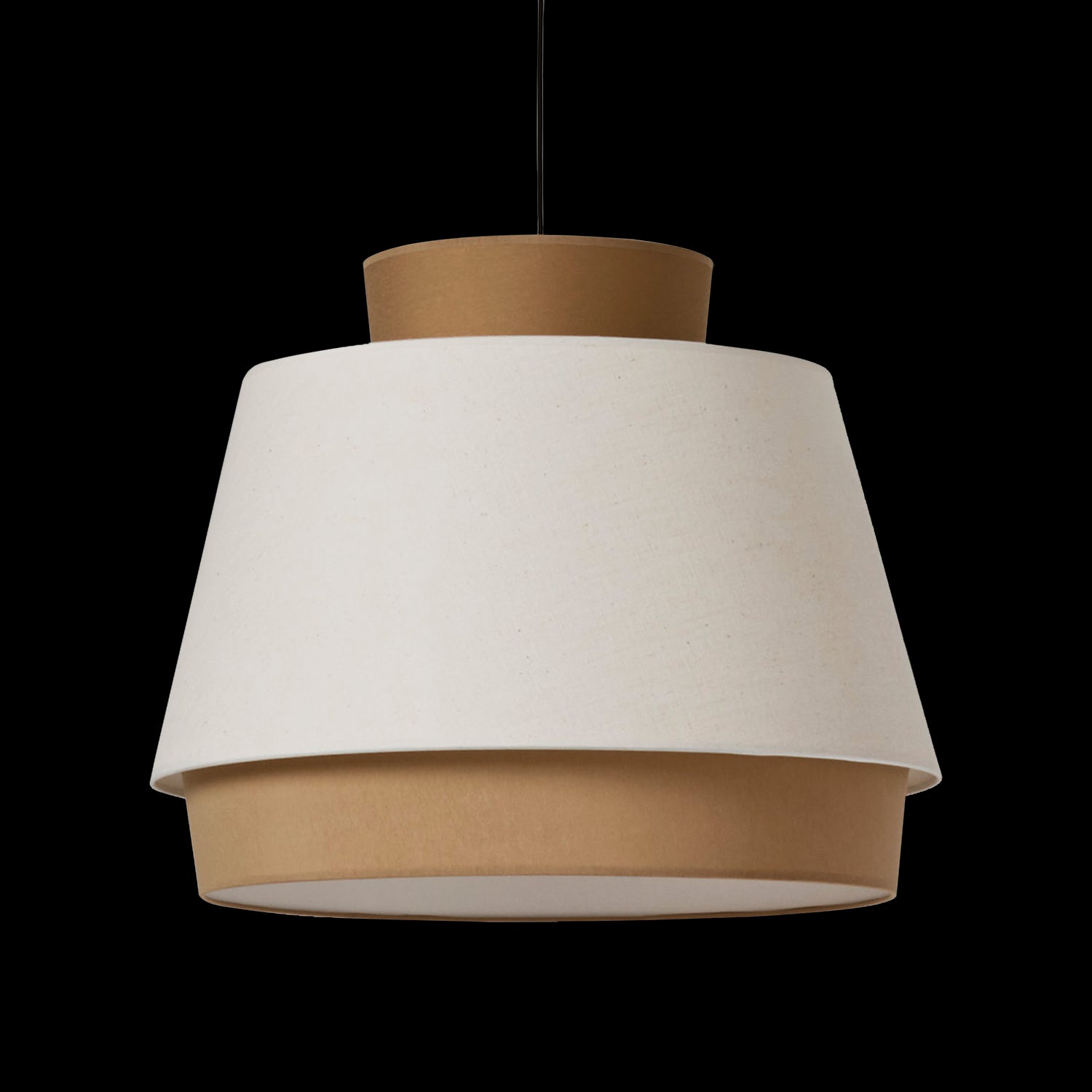 İspanya'da el yapımı olan bu abajur, pamuklu kumaştan (iç abajur) ve ketenden (dış abajur) oluşmaktadır.