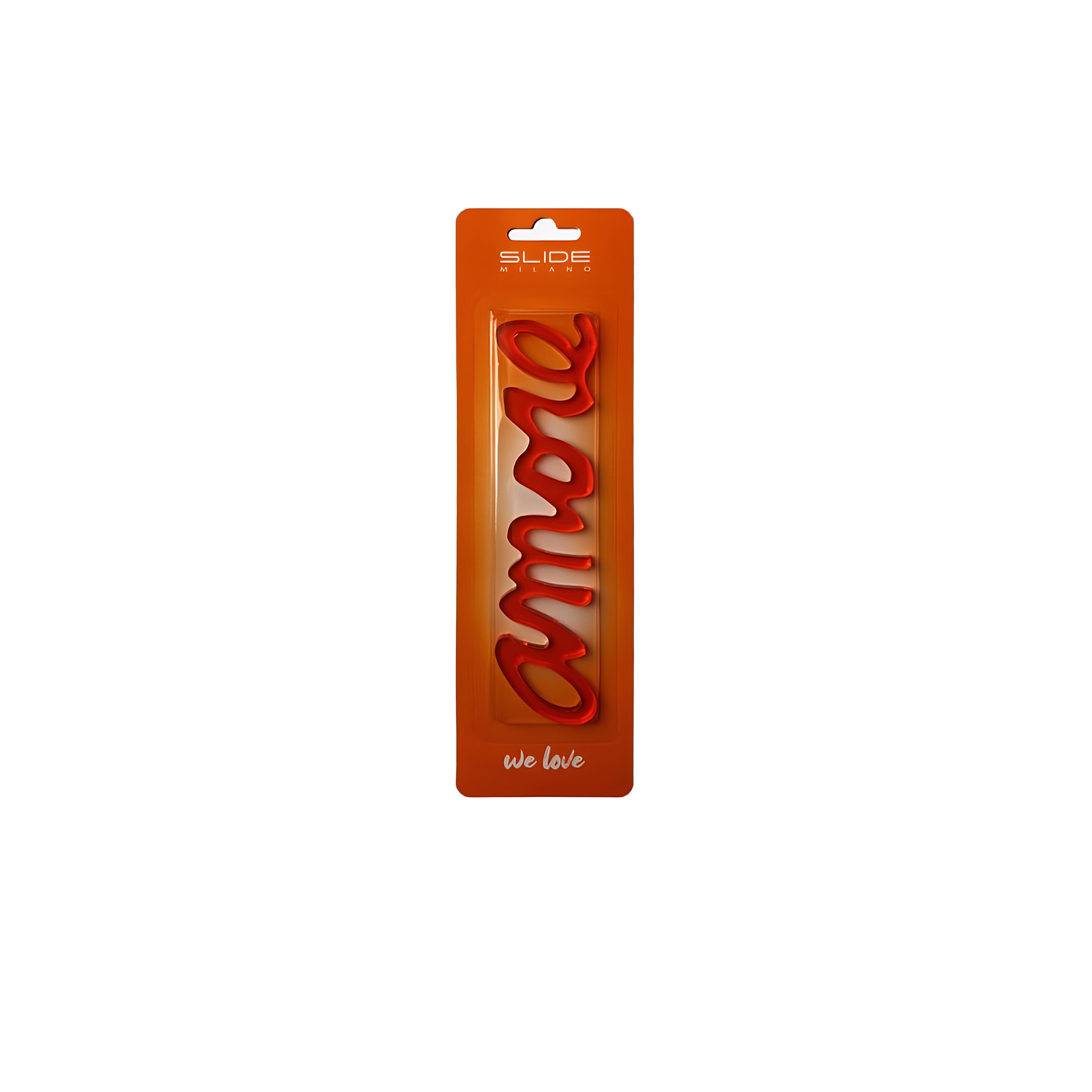 "Amore" dünyadaki en güzel kelimedir. Aşk, büyüleyici ve gizemli bir duygudur. Aşk, hayatın özüdür. Her an "Aşk" kelimesini hatırlamak mutluluk getirir." Güçlü bir duygunun küçük bir elçisi: Amore, küçük boyutlu bir pleksiglas dekorasyon objesi olsa da evrensel mesajını her ortamda yansıtır. Ayrıca yeniden kullanılabilir ambalaj tasarımı sayesinde, karton kısmı ayraç olarak kullanılabilir, böylece her zaman yanınızda taşıyabilirsiniz!