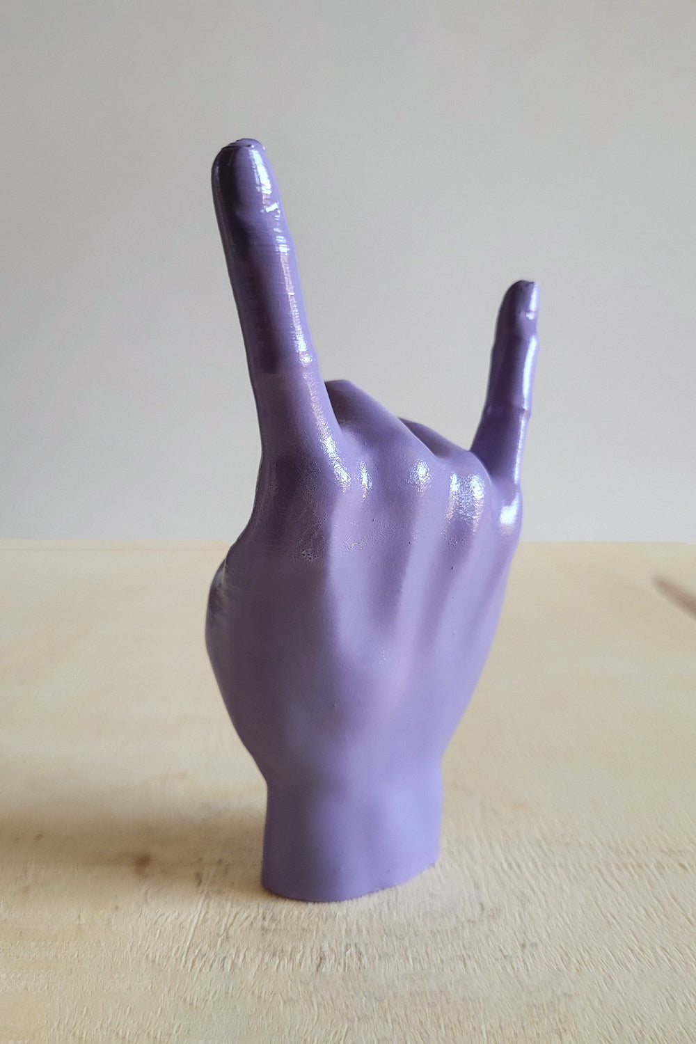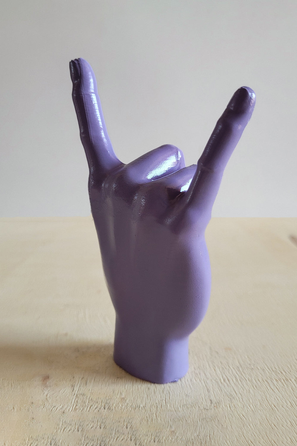 Enerjiyi yükseltmeye hazır mısınız?"Rock On" el heykeli, güçlü duruşuyla her ortamda dikkat çeker. PLA biyopolimer malzemeden 3D baskı tekniğiyle üretilmiş, ardından özenli el işçiliğiyle son hali verilmiştir.