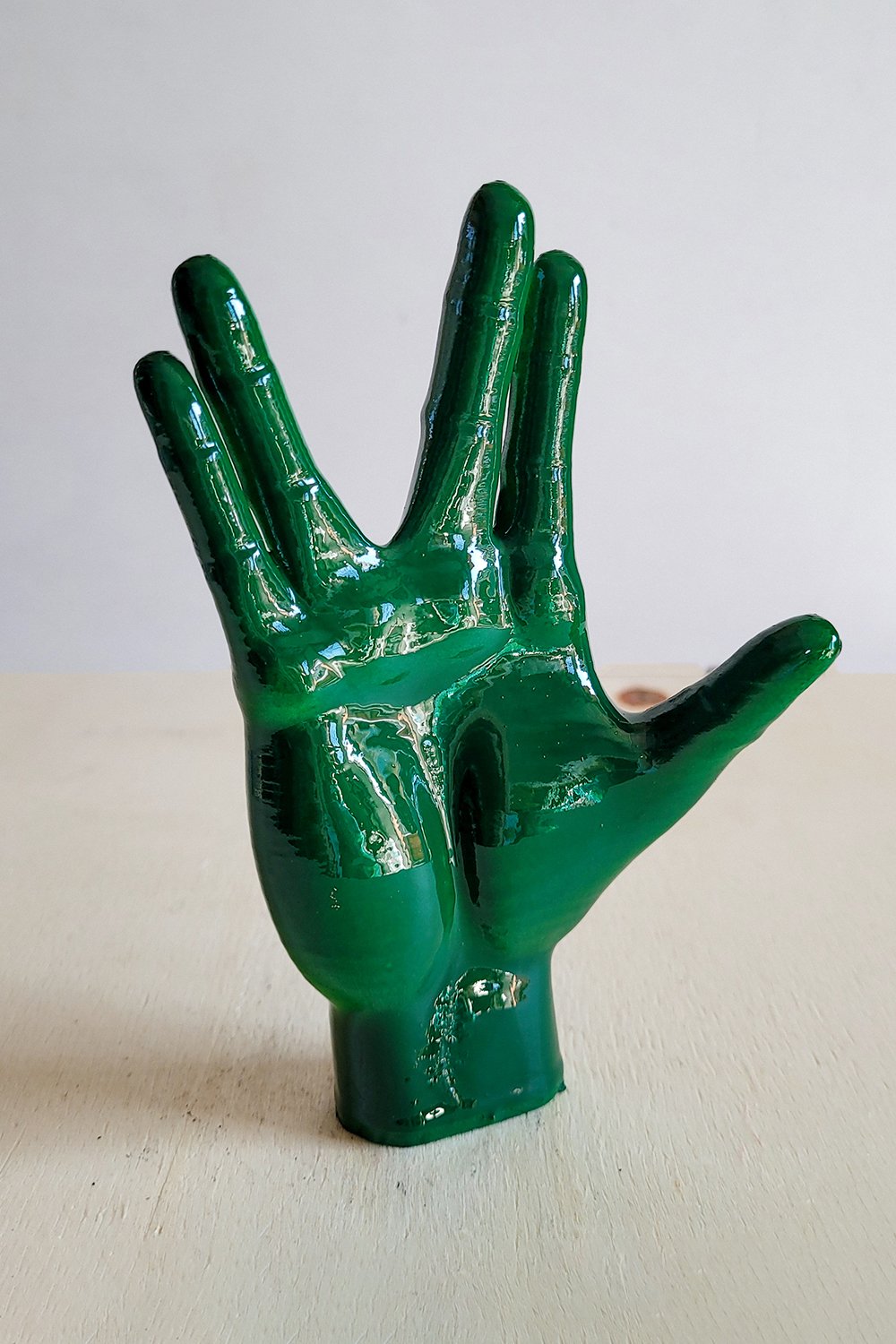 Bu biopolimerden üretilmiş Spock el figürü, "Live Long and Prosper" işaretiyle evinize ikonik bir hava katıyor.