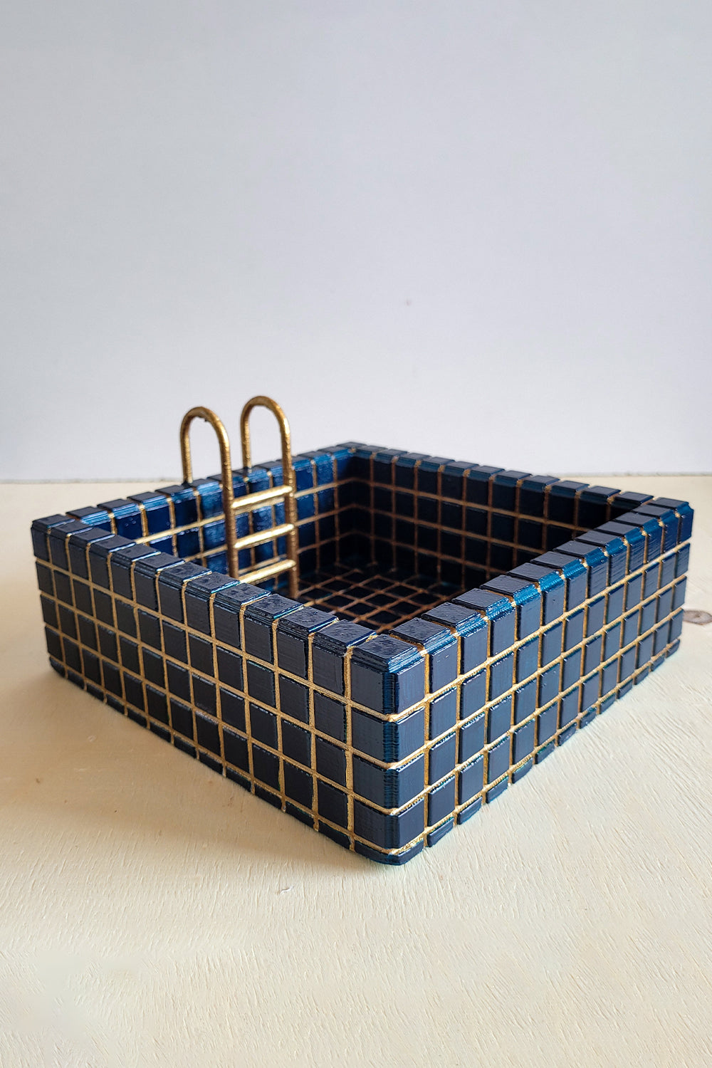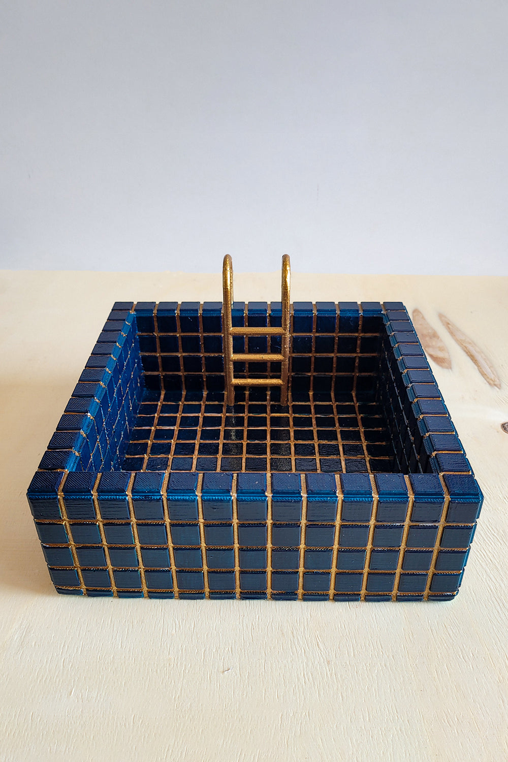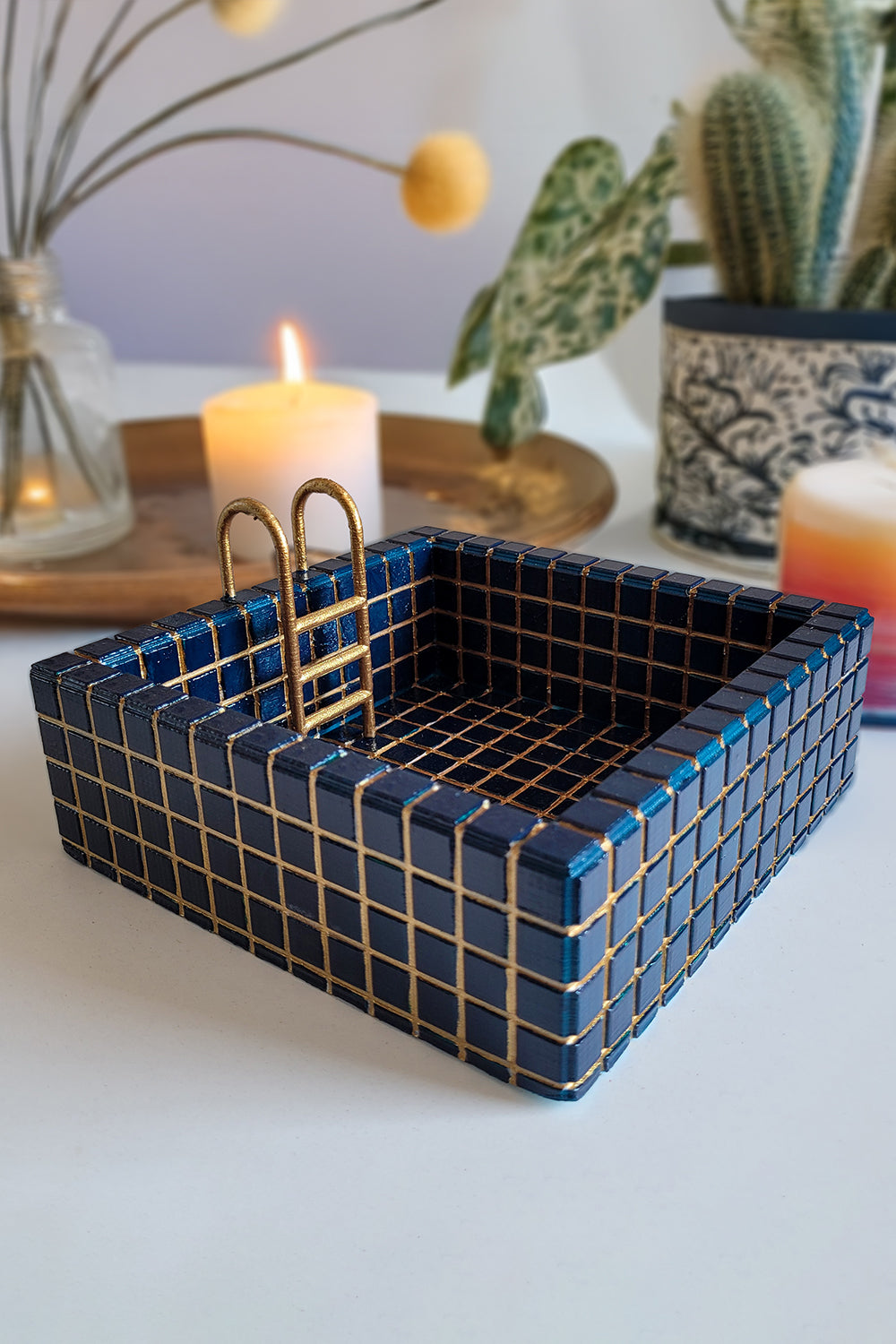 Küçük boyutuyla büyük bir etki yaratan bu mini havuz formundaki saksı, gerçek havuz karolarını andıran detaylı yüzeyi ve metal merdiven dokunuşuyla sıradanlıktan çok uzakta! 🏊‍♀️✨