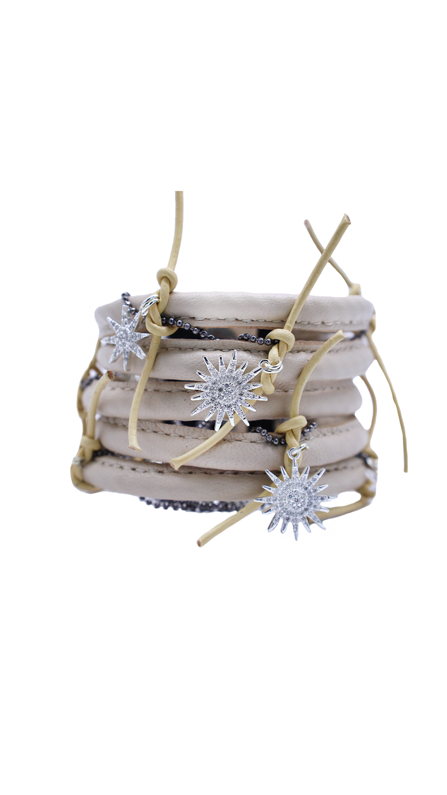 MateryalHakiki deri, kristal taş, 925 ayar gümüş yıldız