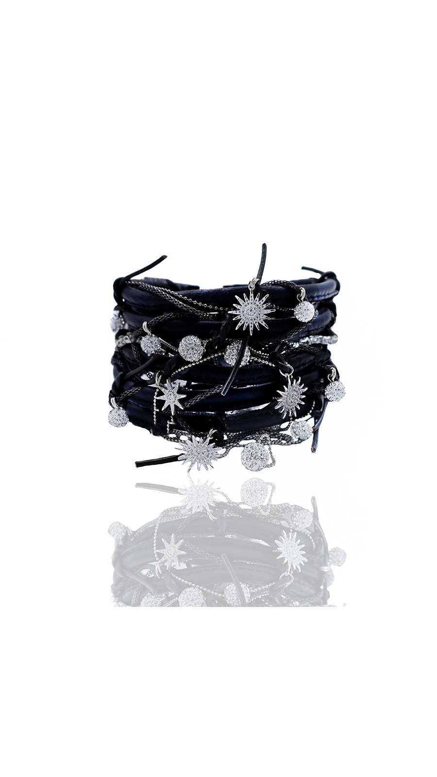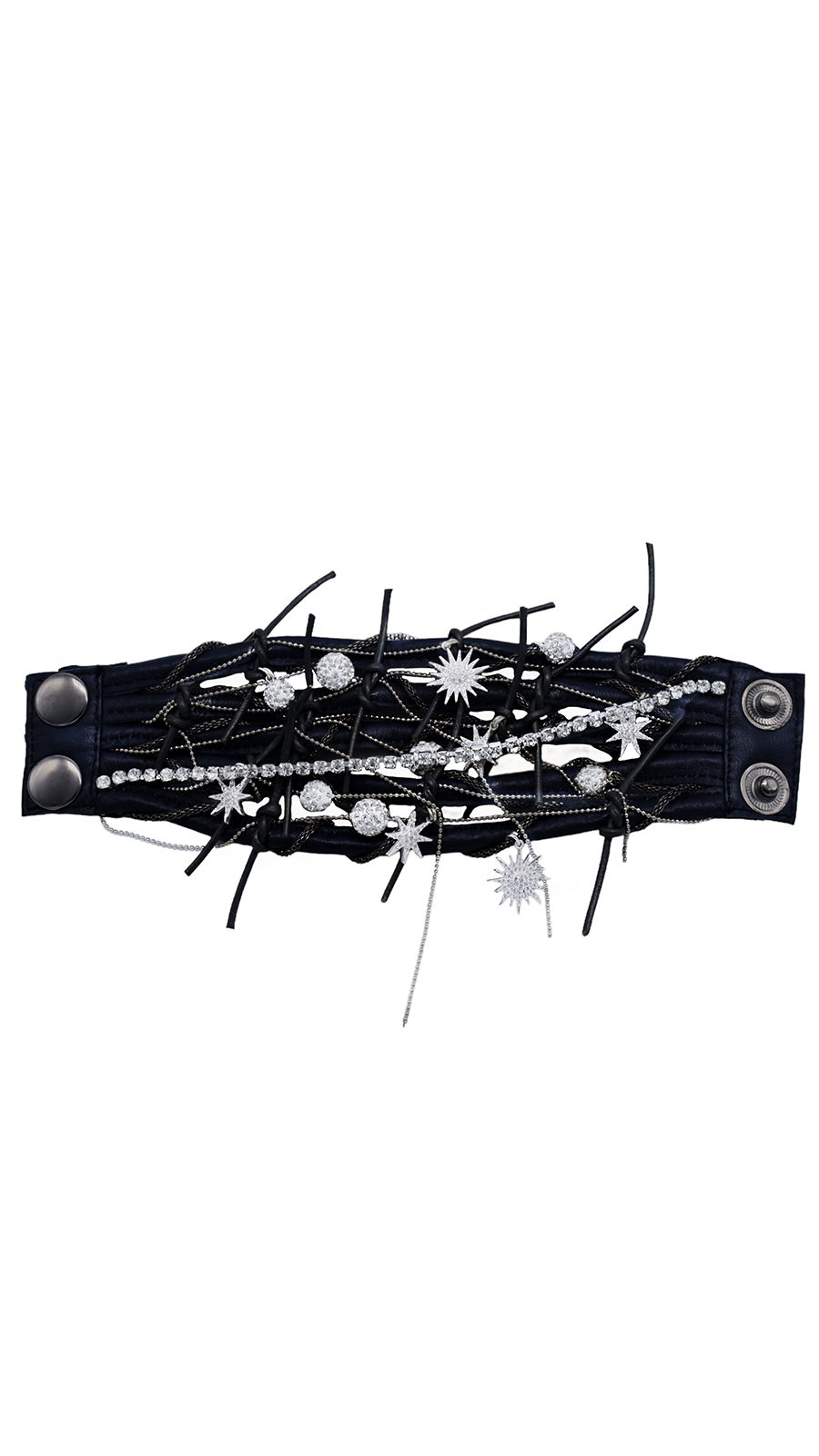 Materyal : Hakiki deri, pirinç zincir, kristal taş, markazitli top