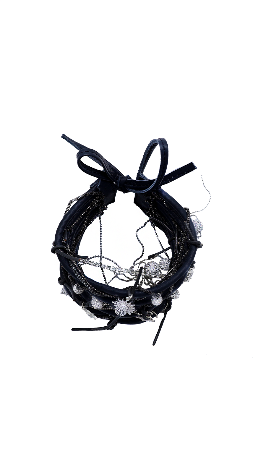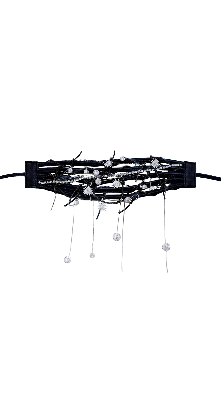 Materyal : Hakiki deri, pirinç zincir, kristal taş, markazitli top