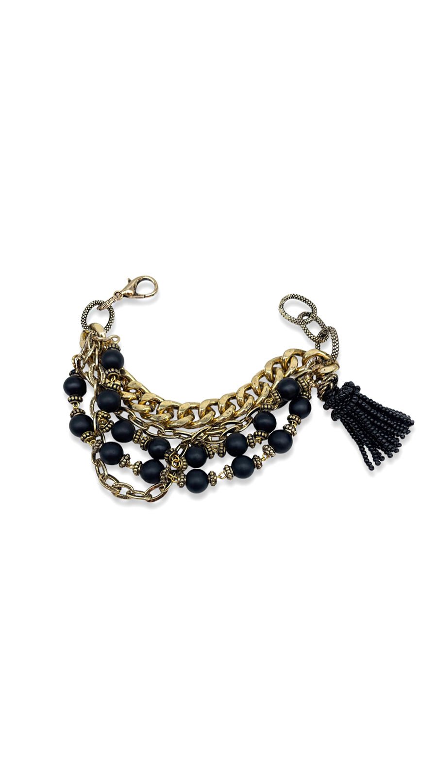 Materyal22 ayar altın kaplama pirinç zincir, siyah oniks taşı, hint püskülü