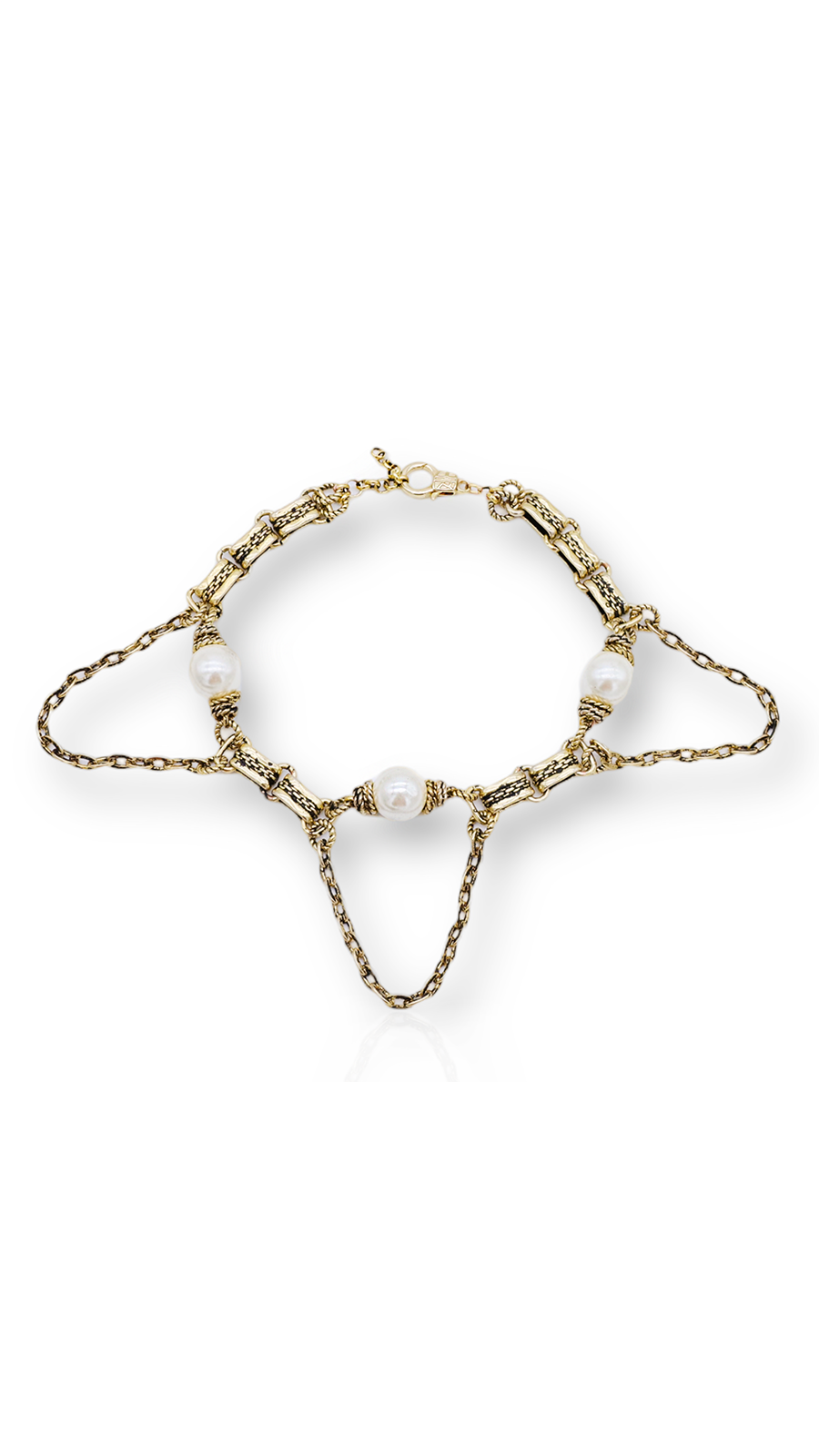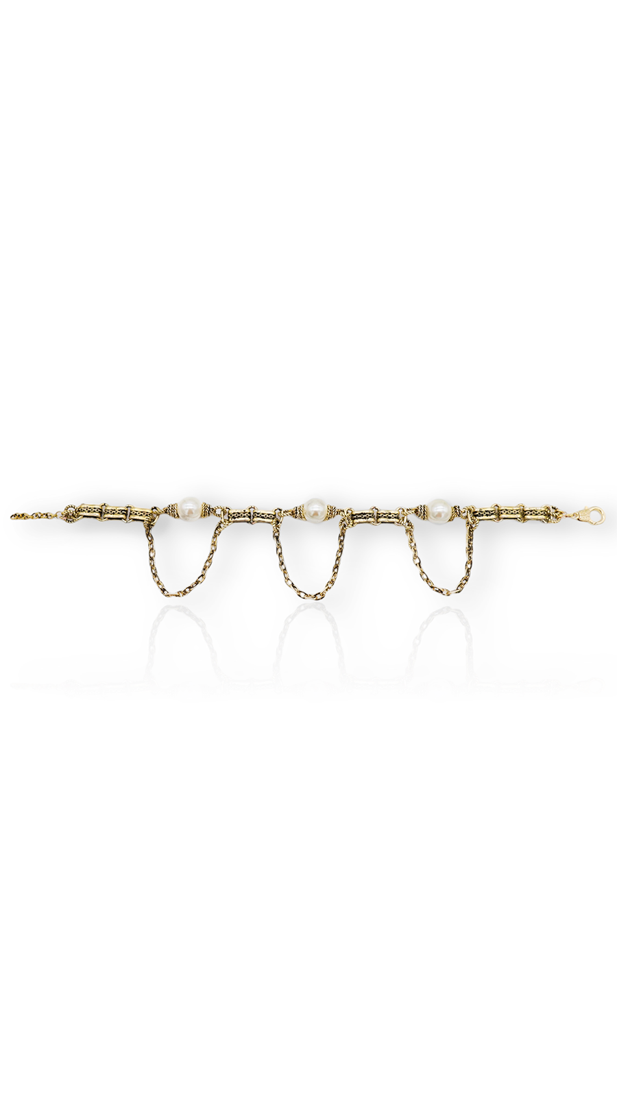 Rubens İnci Altın Kaplama Kolye, 22 ayar altın kaplama pirinç zincirin her halkası, ustalıkla işlenmiş detaylarla zenginleştirilmiş ve bu lüks zinciri, klasik ve zamansız bir güzellik abidesine dönüştürmüştür. Zincirin boyunca yerleştirilmiş olan zarif inciler, sadelik ve sofistikelik arasında mükemmel bir denge kurarken, daha ince zincirlerin kolyeden zarif bir akışla sarkması ise tasarıma oyunbaz bir hava katmaktadır. Rubens İnci Altın Kaplama Kolye, gerek klasik gerekse modern tarzıyla öne çıkmak isteyen kadınların gözdesi olacak.
