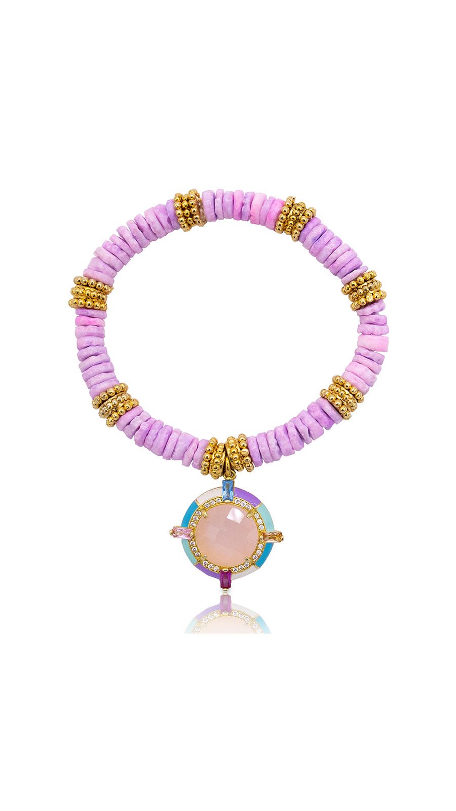 Sun Doğal Taş Bileklik, doğanın zarif dokunuşuyla tasarlanmış benzersiz bir parçadır. Pembe renkteki sedef taşlarının incelikle sıralanmasıyla oluşan bu bileklik, doğal güzelliği ve zarafeti yansıtmaktadır. Belirli aralıklarla eklenmiş 22 ayar altın kaplama pirinç ara materyaller, bilekliğe şıklık ve zarafet katmaktadır. Sun Doğal Taş Bileklik merkezindeki charm kristal taş, tüm bilekliğe cazibesini katmaktadır. Bu zarif bileklik, günlük kullanıma mükemmel bir uyum sağlamak için tasarlanmıştır.