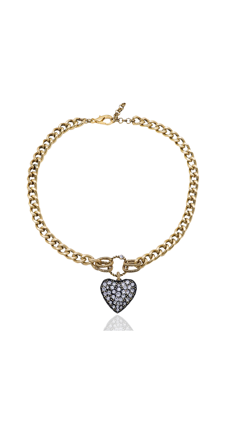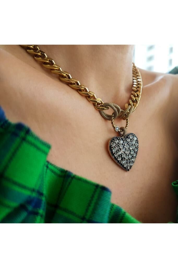 Materyal22 ayar altın kaplama kalp, zirkon taş, 22 ayar altın kaplama pirinç zincir