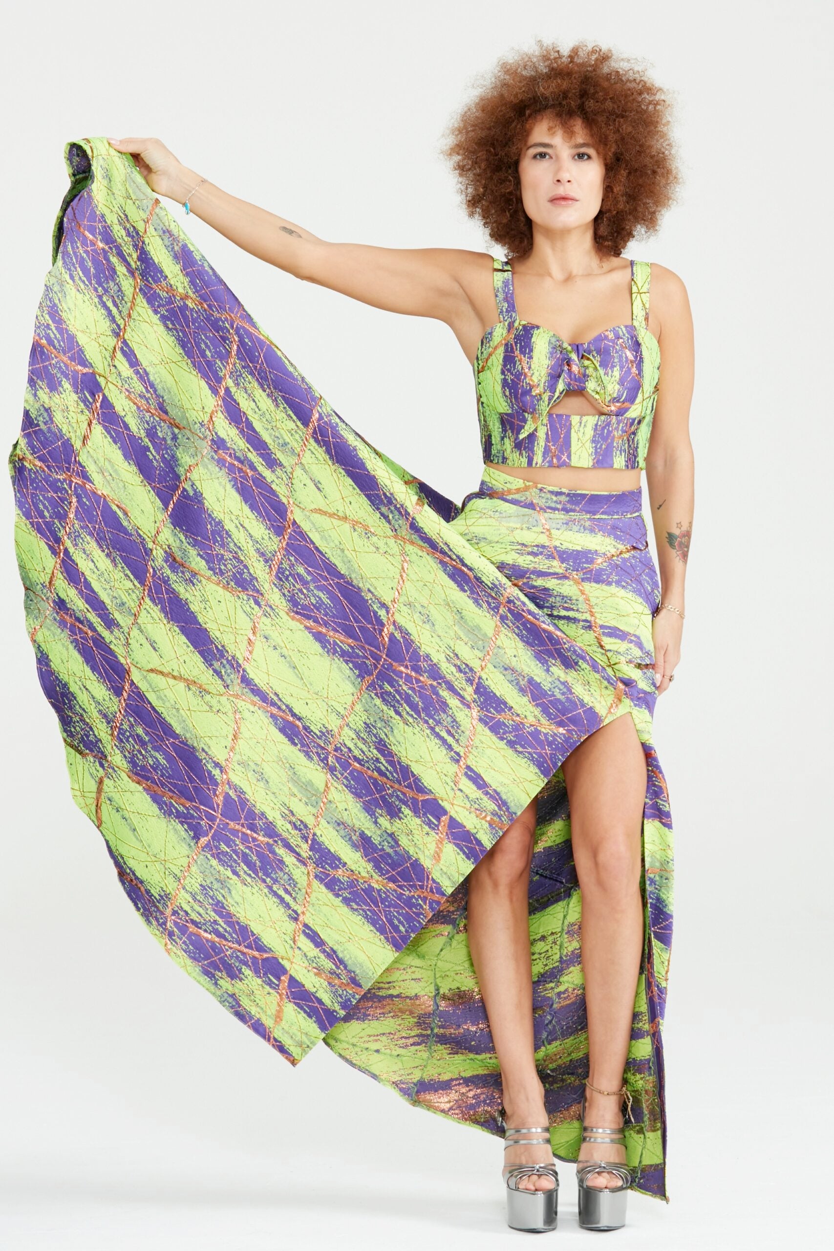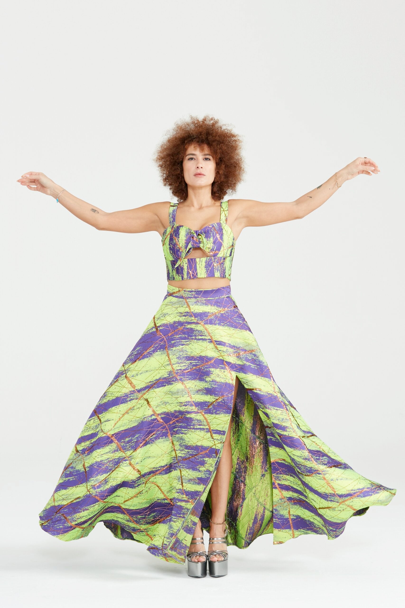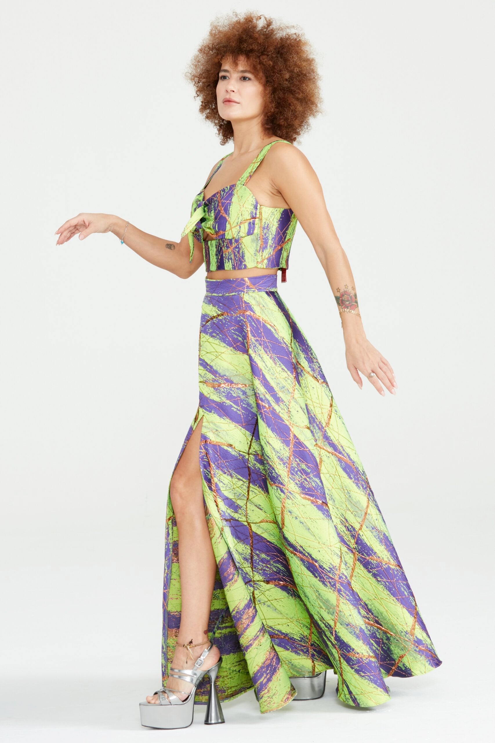 Shine Yarım Daire Yırtmaçlı Etek – Mor/Yeşil