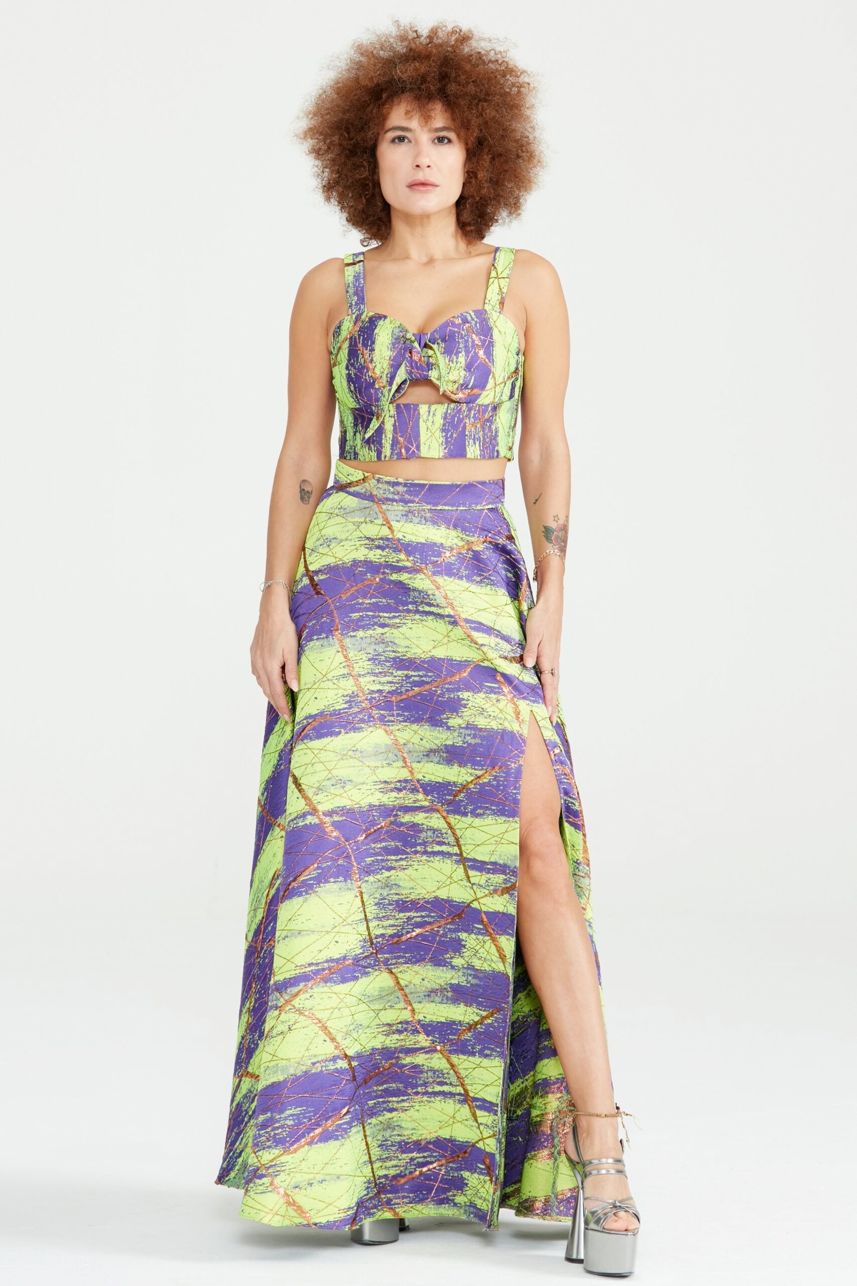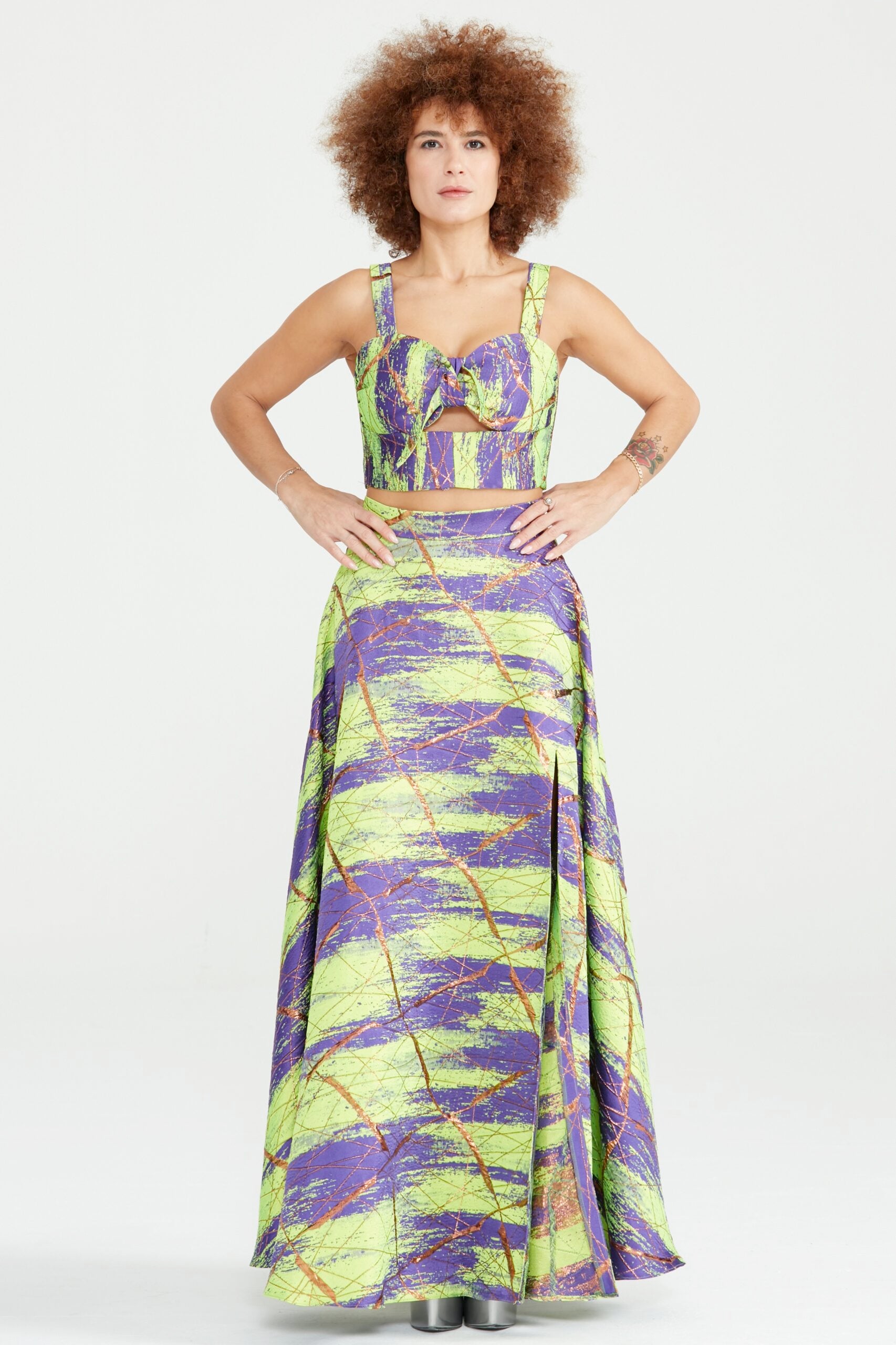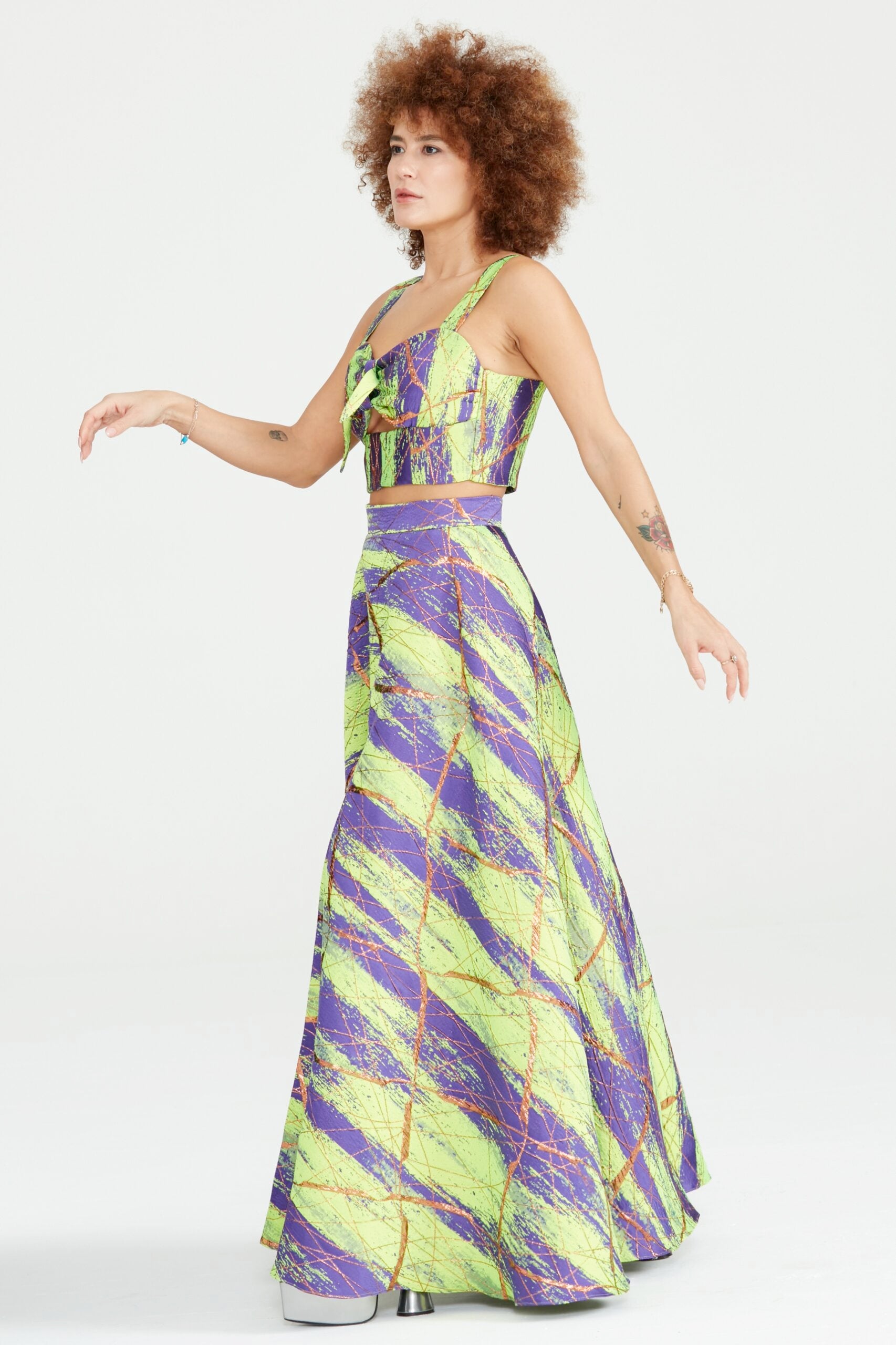 Shine Yarım Daire Yırtmaçlı Etek – Mor/Yeşil