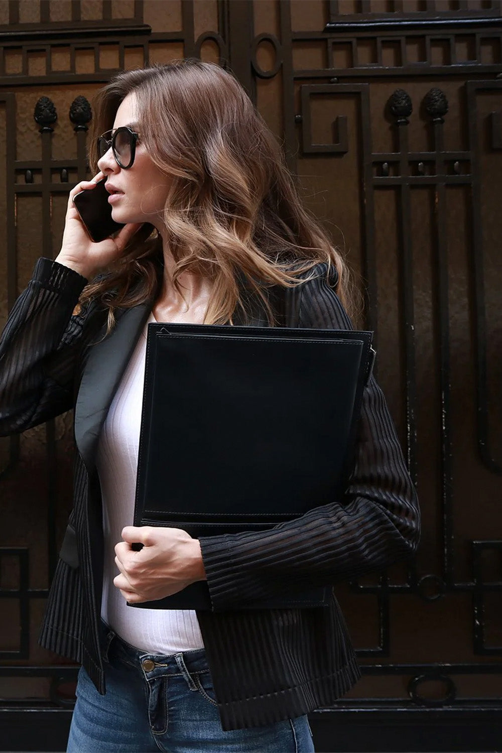 Bir büyük bölme ve yanda iki ince cep bulunan Flat, belgelerinizi, dizüstü bilgisayarınızı, kalemlerinizi ve diğer küçük eşyalarınızı saklamak için mükemmeldir. Geri dönüştürülmüş deriden yapılmış, mükemmel bir çevre dostu çantadır.