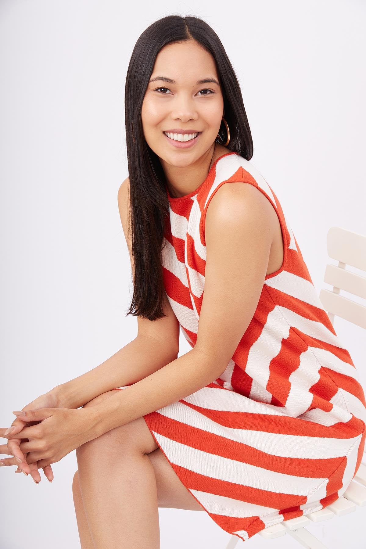DİAGONAL ÇİZGİLİ, A FORM, KOLSUZ İNCE TRİKO ELBİSE    DIAGONAL STRIPED, A FORM, FINE KNITTED SLEEVELESS DRESS