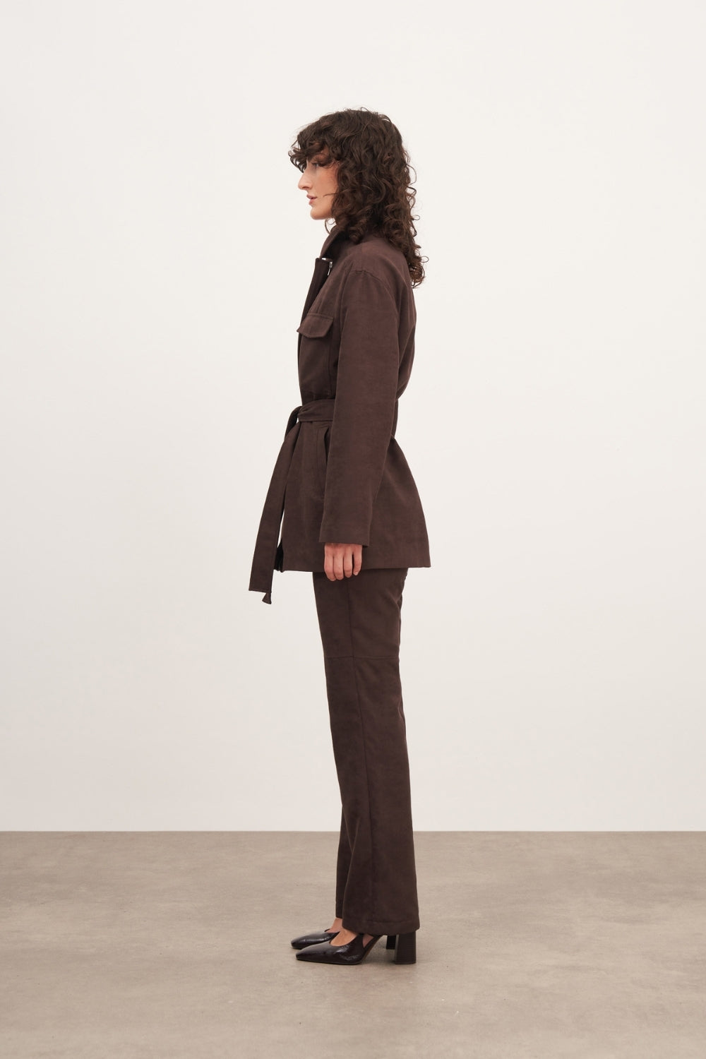 WINGCOTT Acı Kahve Süet Flare Pantolon