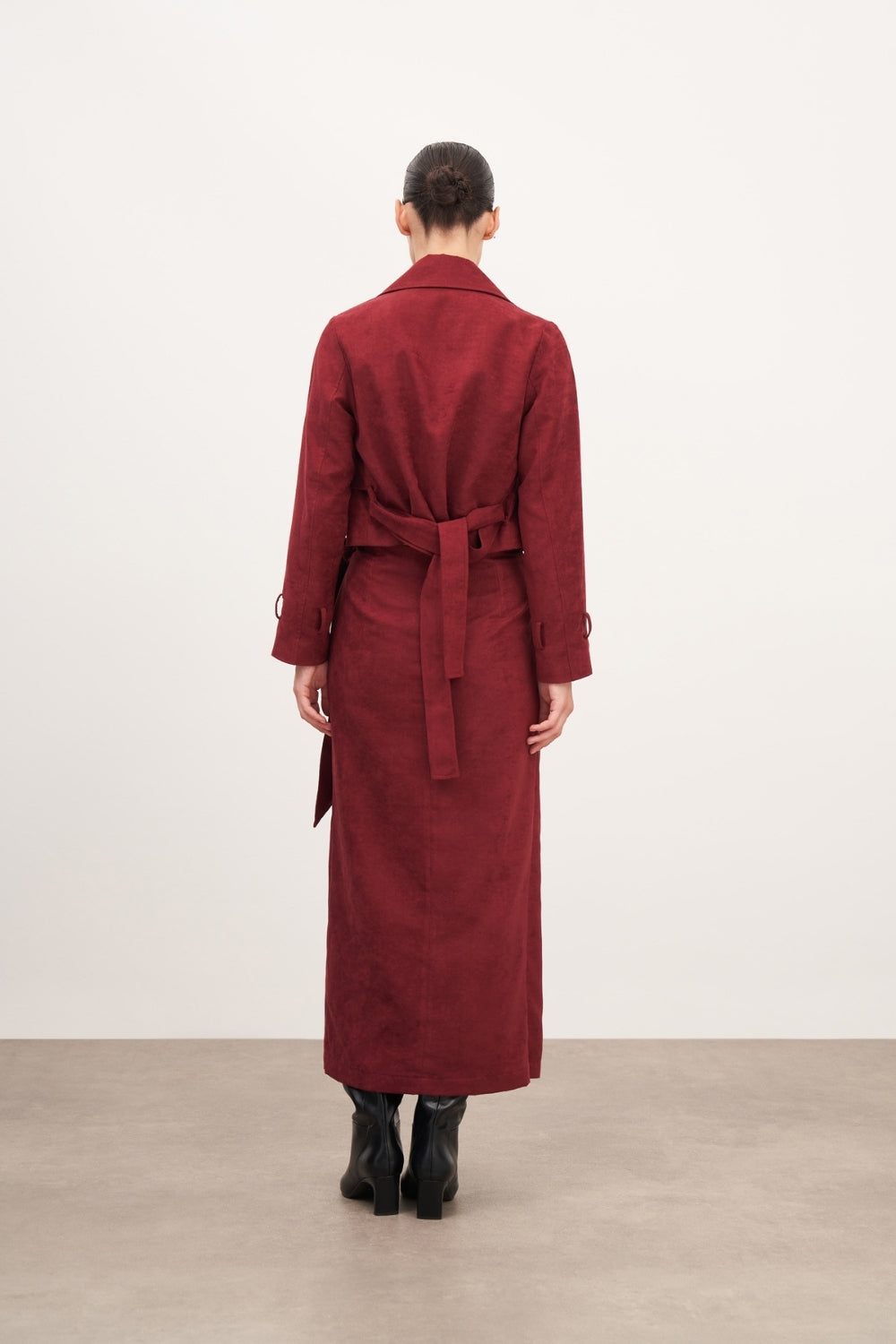 WINGCOTT Bordo Süet Kemerli Kısa Ceket