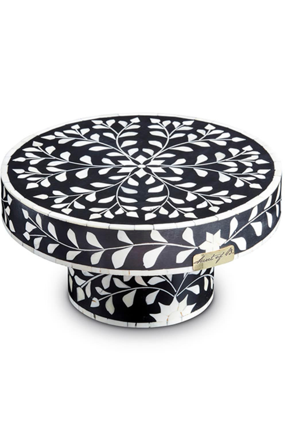 Black Floral Pattern Mother-Of-Pearl Inlay Cake Stand