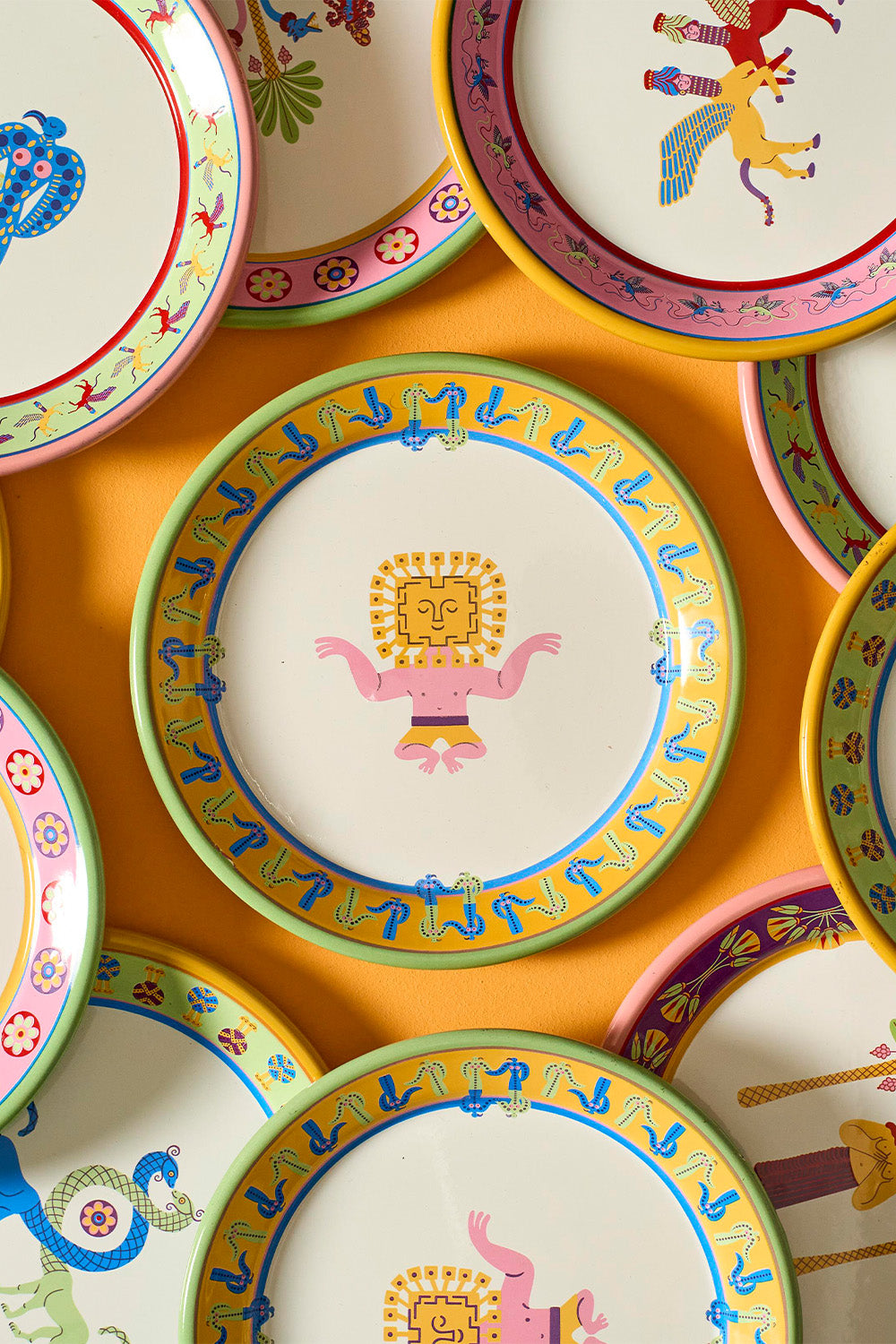 Inspired by the ancient motifs and Sun King of ancient civilizations of Anatolia and Mesopotamia, this plate promises to be with you long years to add a touch of myth to your life. This ancient king will bring your tables the light and can be used to serve the most wonderful dishes or as an ornament in your house. This plate can be kept clean very easily either in a dishwasher or by hand.