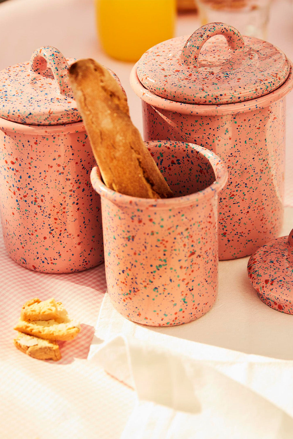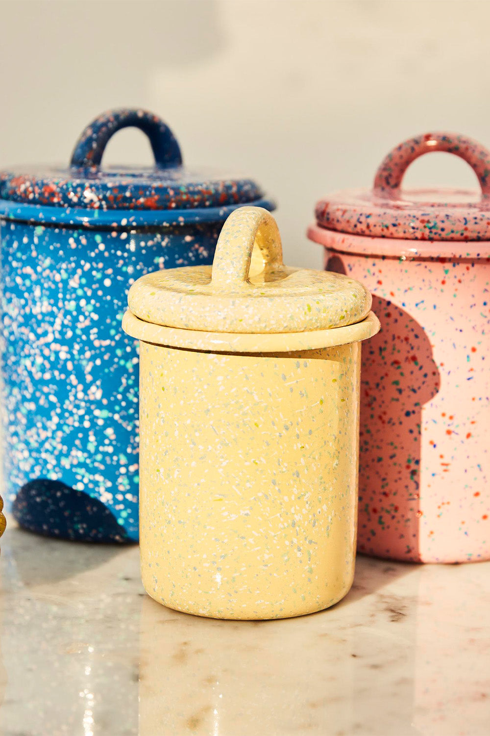Flow Fest jar II promises to be with you long years to color your life and grow a vintage feel in doing so. It will add to your home, restaurant, boat or caravan helping you preserve any kind of dry food, herbs, as a container for utensils or as a vase for your flowers. Save the best space in your kitchen, bathroom, or anyplace you want for these festive beauties. Use separately or as a set of 3 with 2 other sizes.