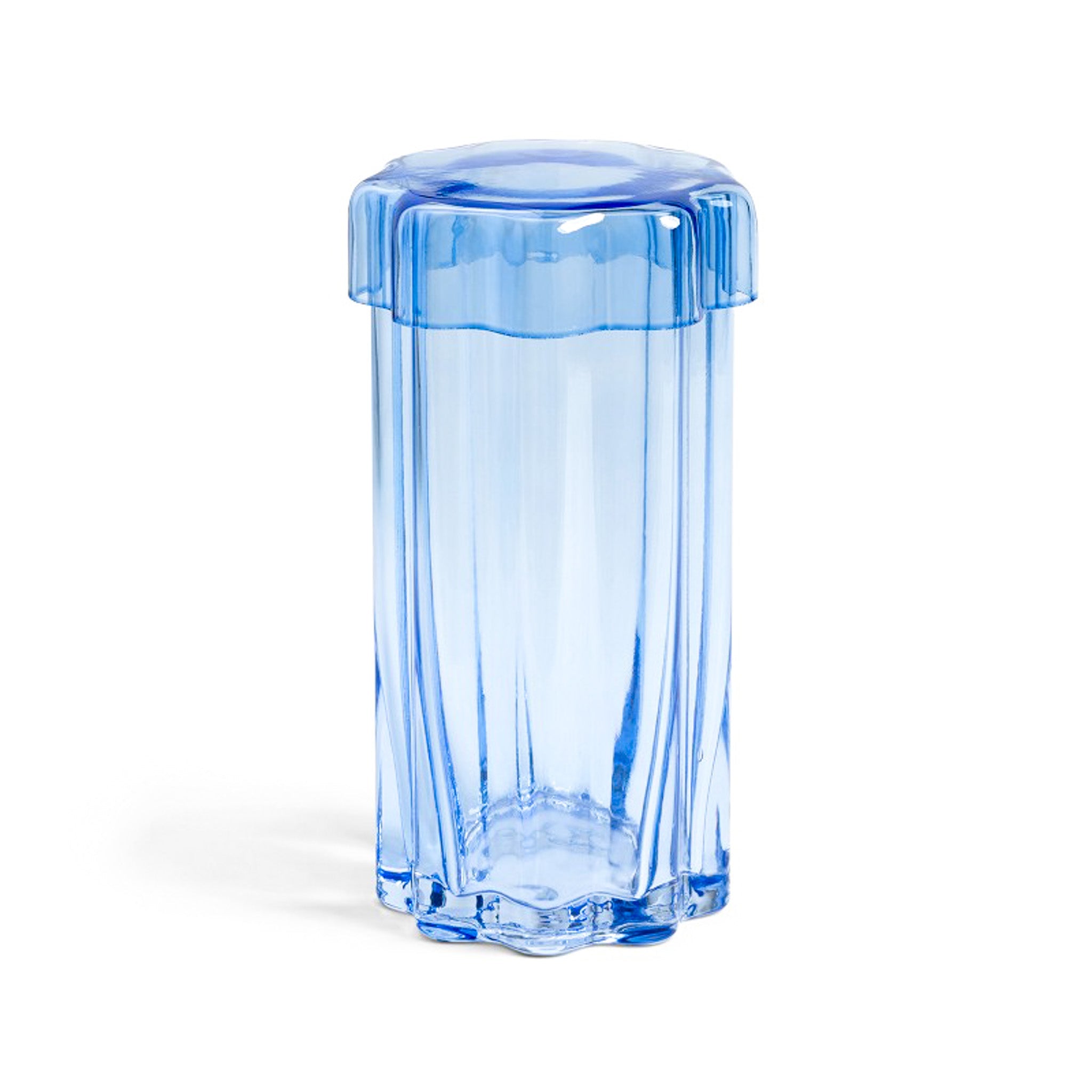 Bu narin kavanoz, evde sevdiğiniz eşyaları saklamak için ideal bir kullanım sunar. Renkli camın geometrik şekillerle birleşimi modern ve şık bir görünüm yaratırken, uyumlu kapak içindekileri güvenle korumak üzere tasarlanmıştır.