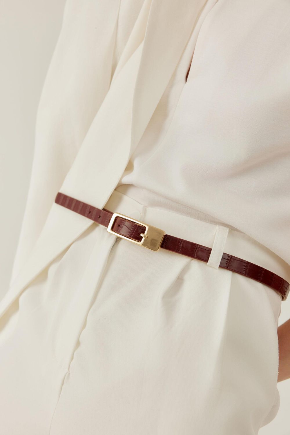 The Duke Leather Belt is a limited-edition women’s accessory, expertly crafted from thin, high-quality Italian leather and finished with a sleek gold bar buckle. Designed with both elegance and versatility in mind, this slim belt can be worn comfortably at the waist or hips, making it perfect for styling with smart casual suits, tailored blazers, classic denim, and timeless maxi dresses. A refined expression of understated luxury accessory, the Duke brings structure and polish to any outfit, A must-have piece for the modern, style-conscious woman.