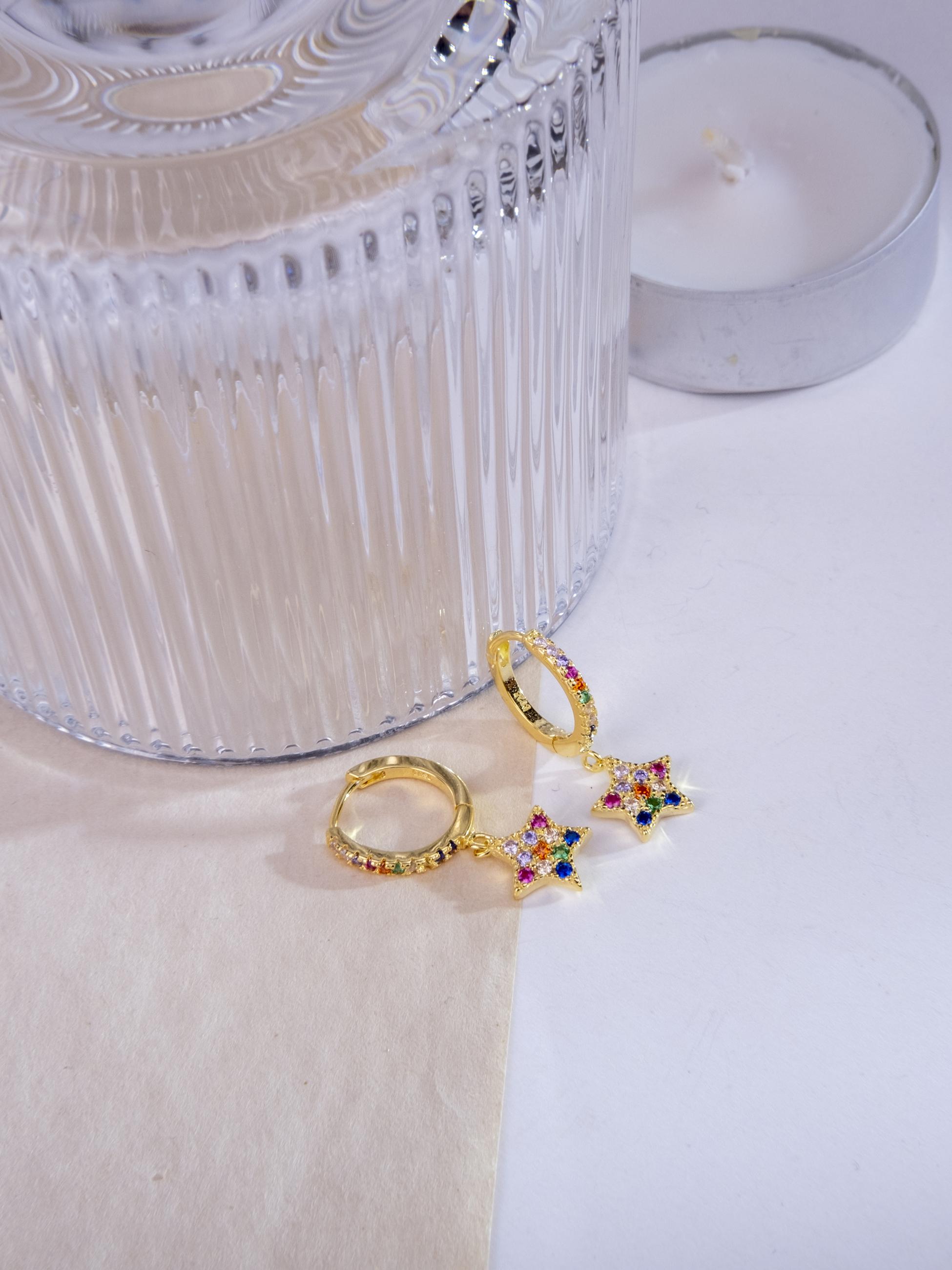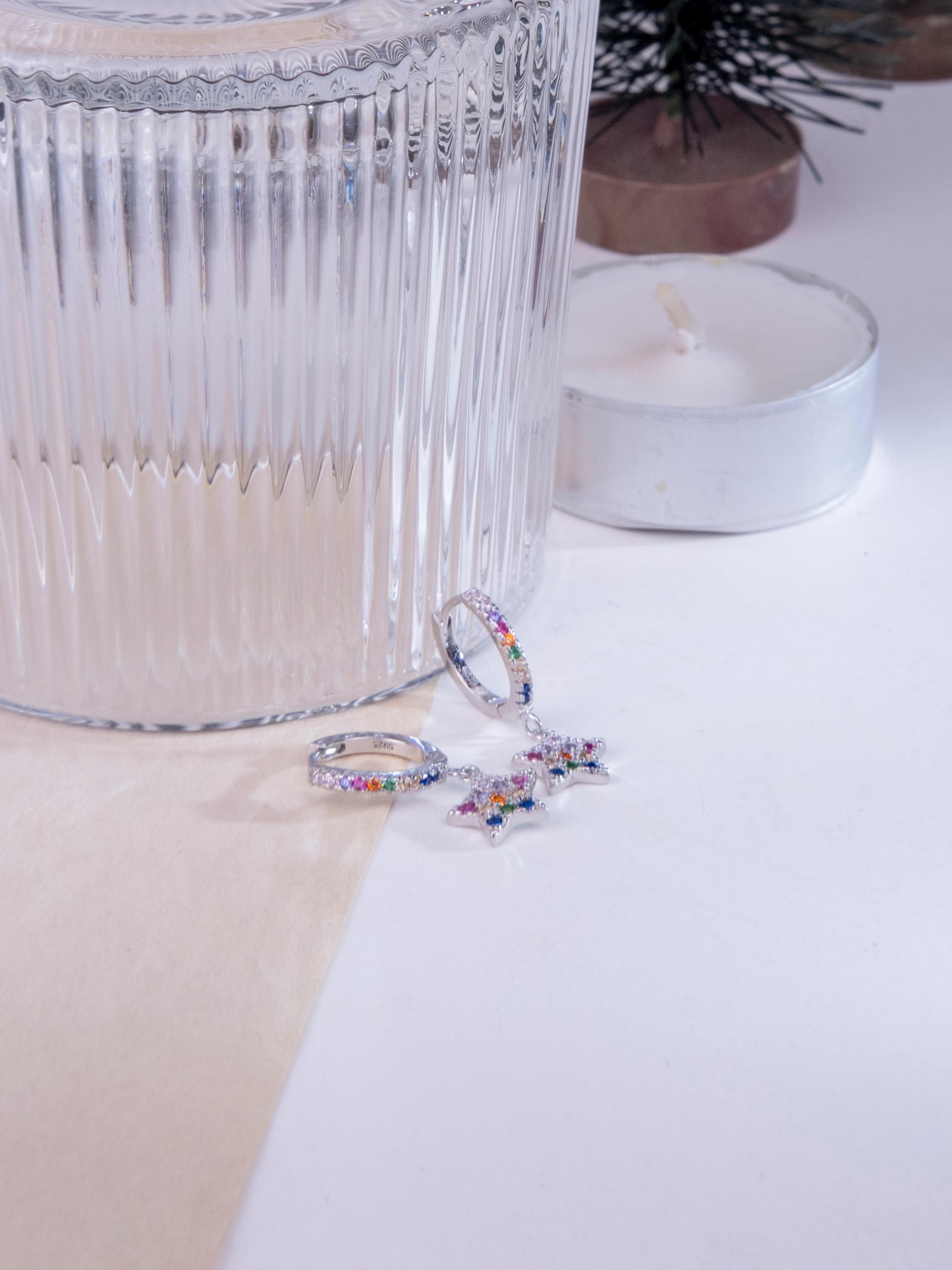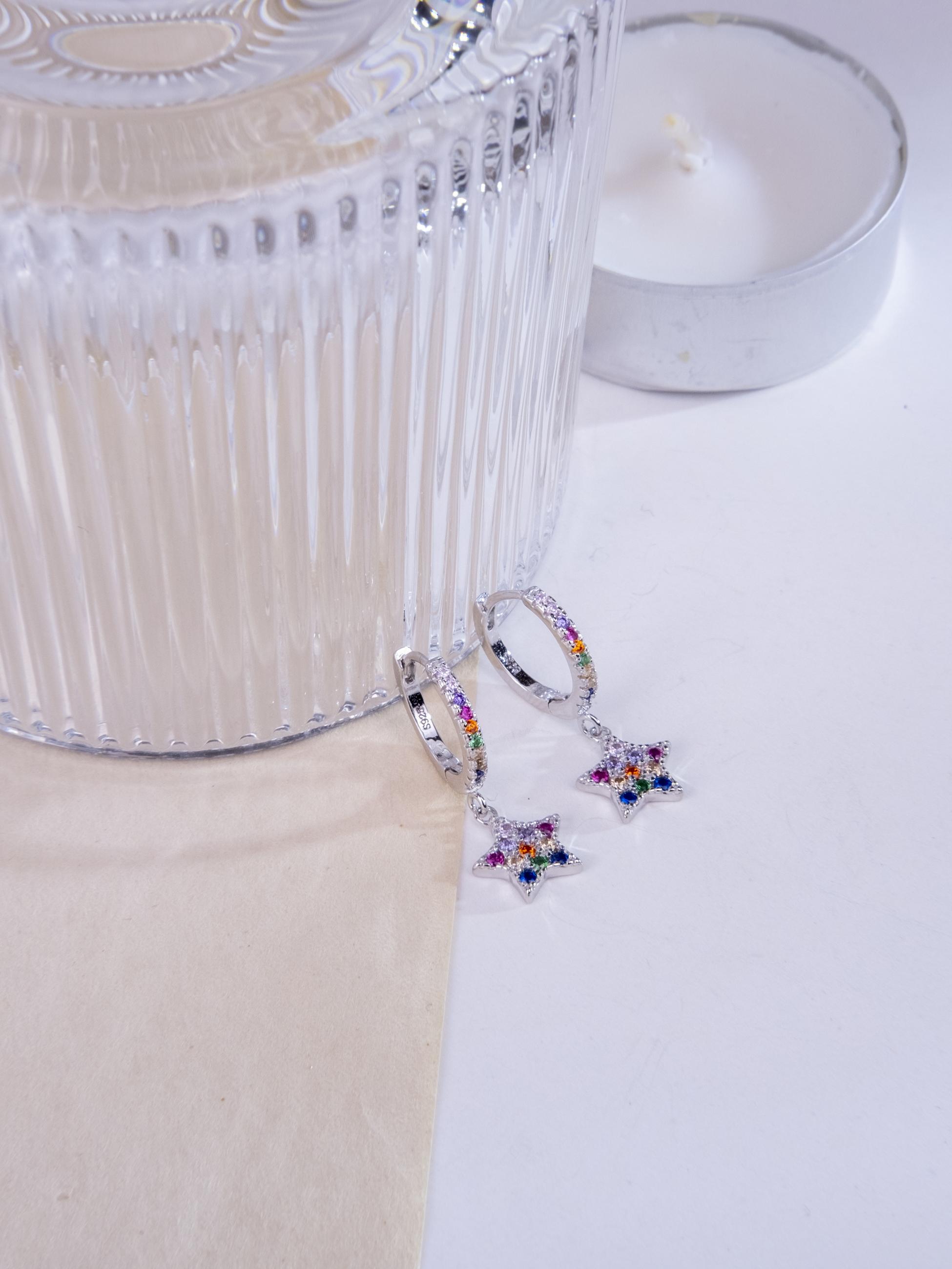 Rainbow Star 925 Ayar Gümüş Renkli Taşlı Yıldız Küpe