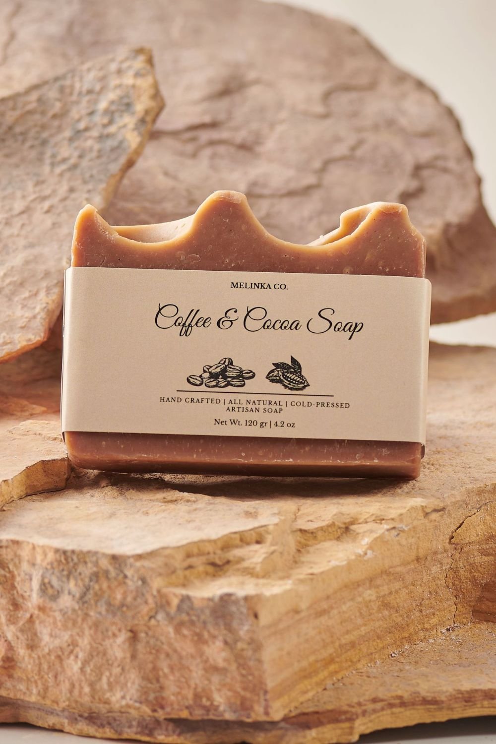 İçindekiler: Soğuk sıkım zeytinyağı, hindistan cevizi yağı, hint yağı, shea yağı, kakao yağı, demlenmiş kahve, öğütülmüş kakao çekirdeği, distile su, sodyum hidroksit.