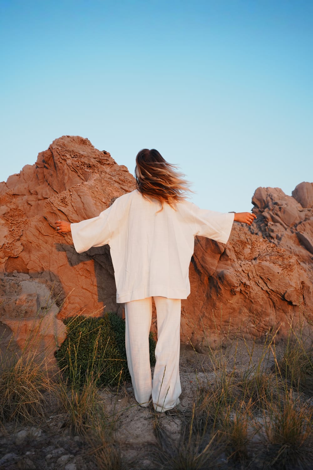 %100 Keten, orta belli, rahat kesim, cepli, astarlı