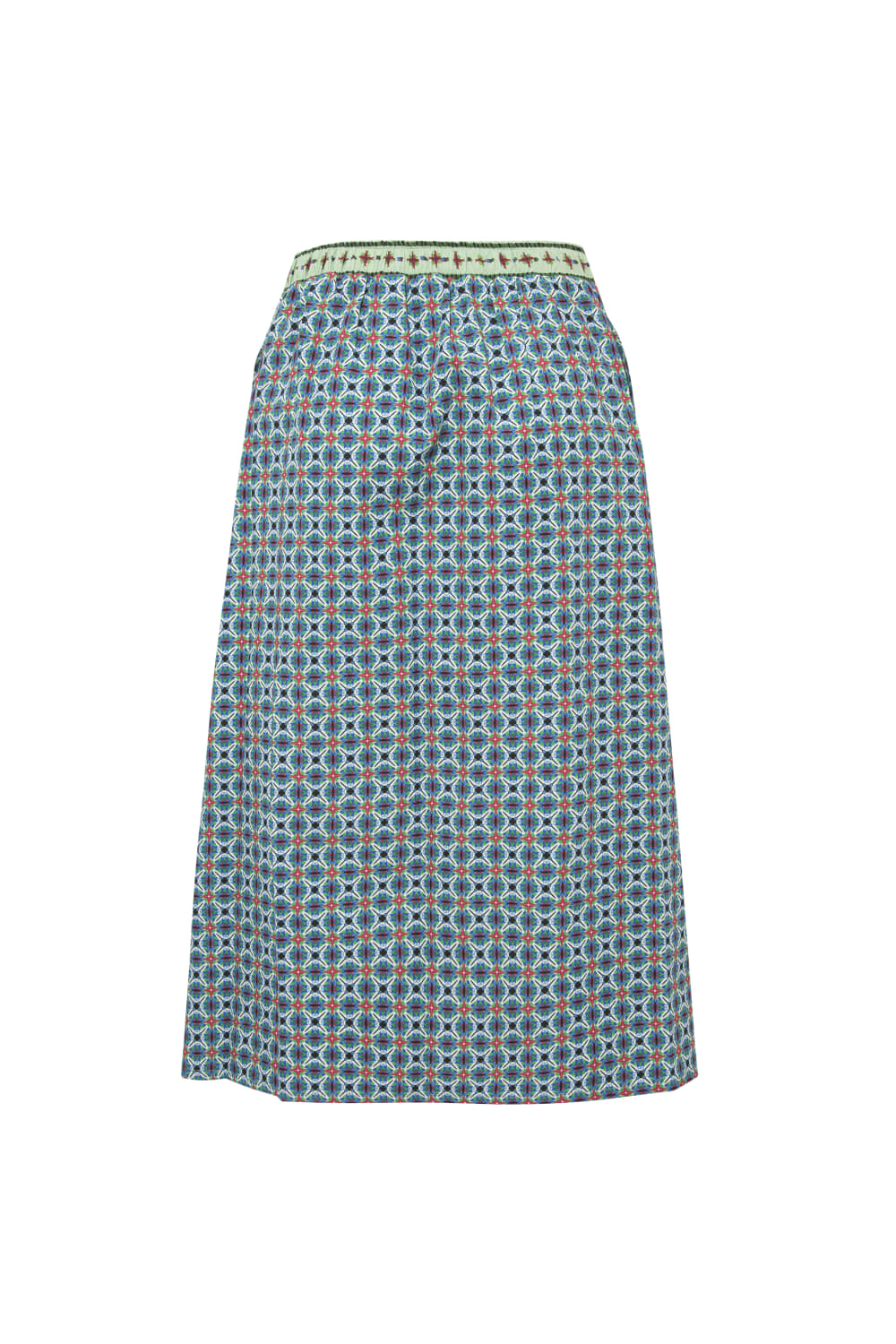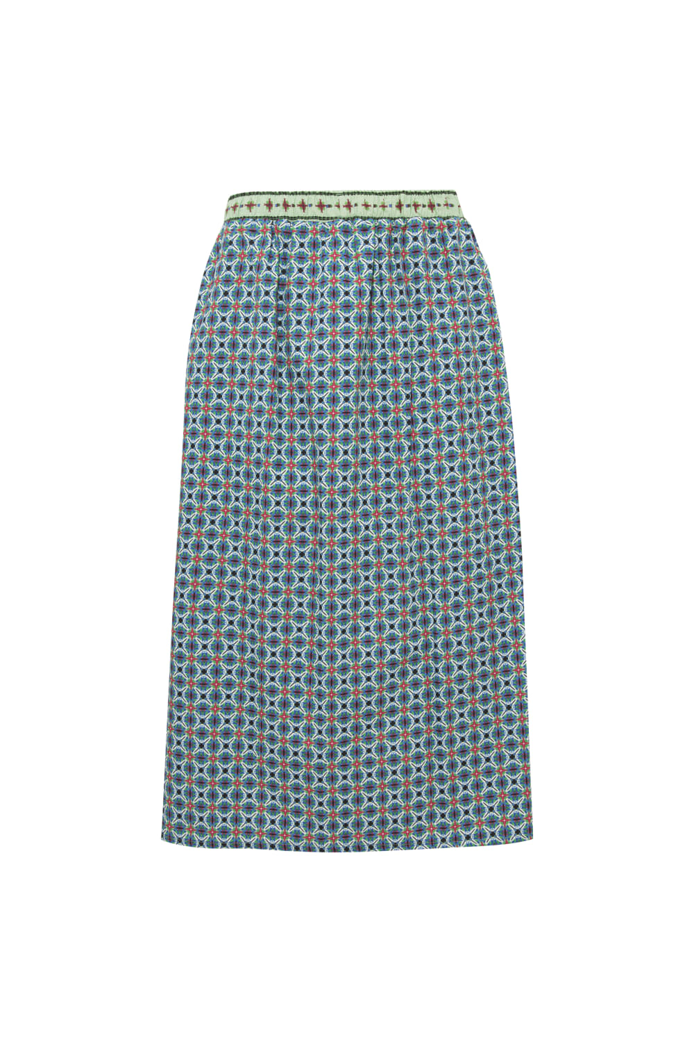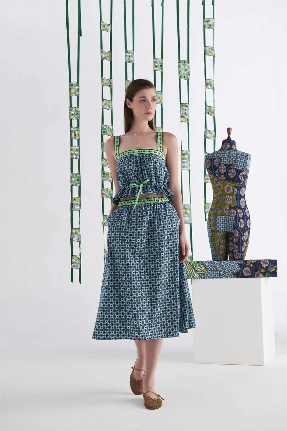 Desenler, Sanatçı Defne Camcıoğlu’nun eserlerinden oluşturulmuştur,%100 Pamuk,Ürün dayanıklılık ve konfor gözetilerek, ince dokulu ve tok duruşlu poplin kumaş ile özenle tasarlanmıştır,Geometrik desenlerden oluşan eser, poplin kumaş'a dijital baskı yöntemi ile basılmıştır,Midi, beli lastikli, yüksek bel olan ürün kruvaze detayı ile şık bir görünüm sunmaktadır.BAKIM ÖNERİLERİ:30 derecede yıkama yapılabilir,Ağartıcı kullanılamaz,Makinede kurutmayınız.Boy: 75 cmEn: 120 cmBel: 60 cm