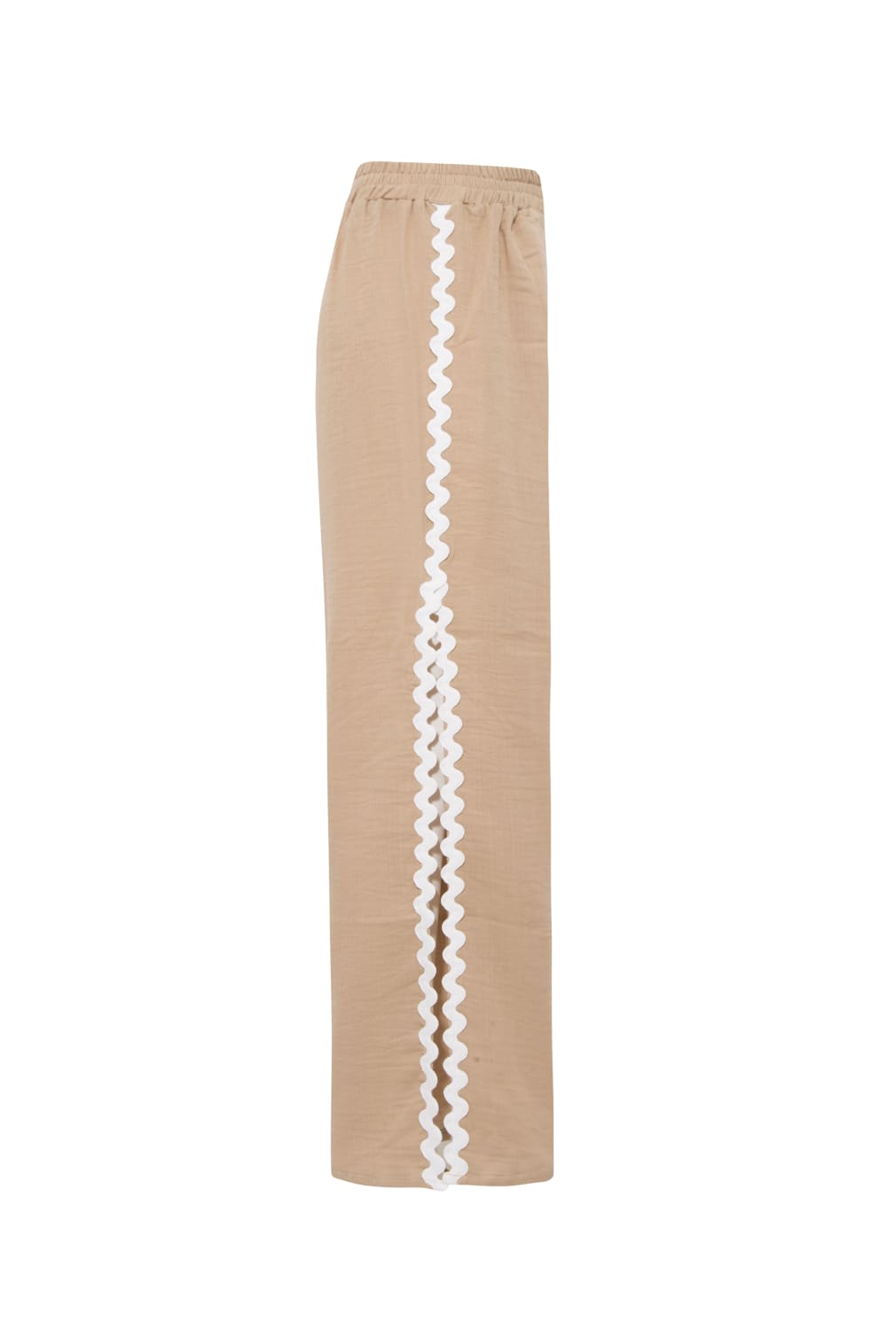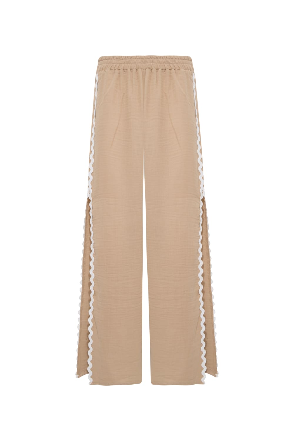 Su Taşı Detaylı Bej Yandan Yırtmaçlı Pantolon