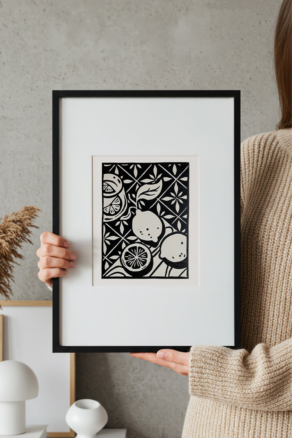 Arşivsel kağıt üzerine 50 edisyonlu (sınırlı sayıda) orjinal linöl baskı.Linol baskılar, tasarımların özenle linolyum bloklara oyulduğu, mürekkeplendiği ve ardından kağıda aktarıldığı geleneksel bir baskı yöntemidir. Sürecin her adımı el işçiliği ile yapıldığından tüm baskılar eşsizdir ve kendine özgü, benzersiz detaylar taşır.