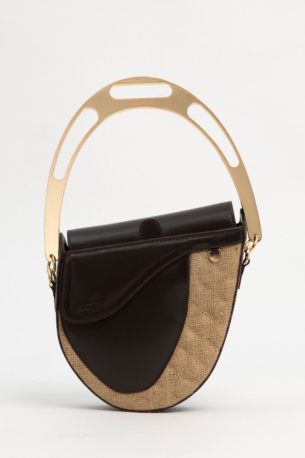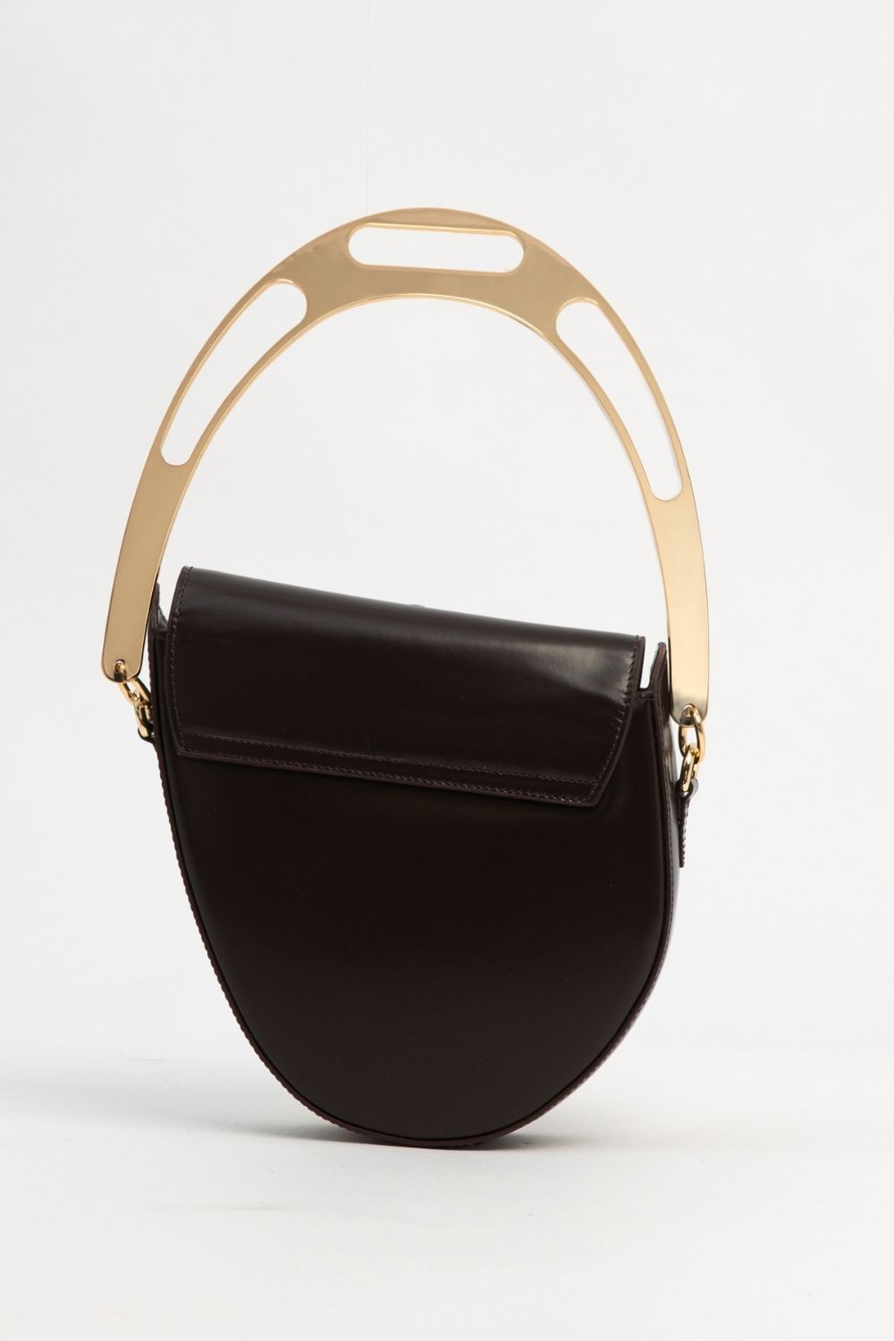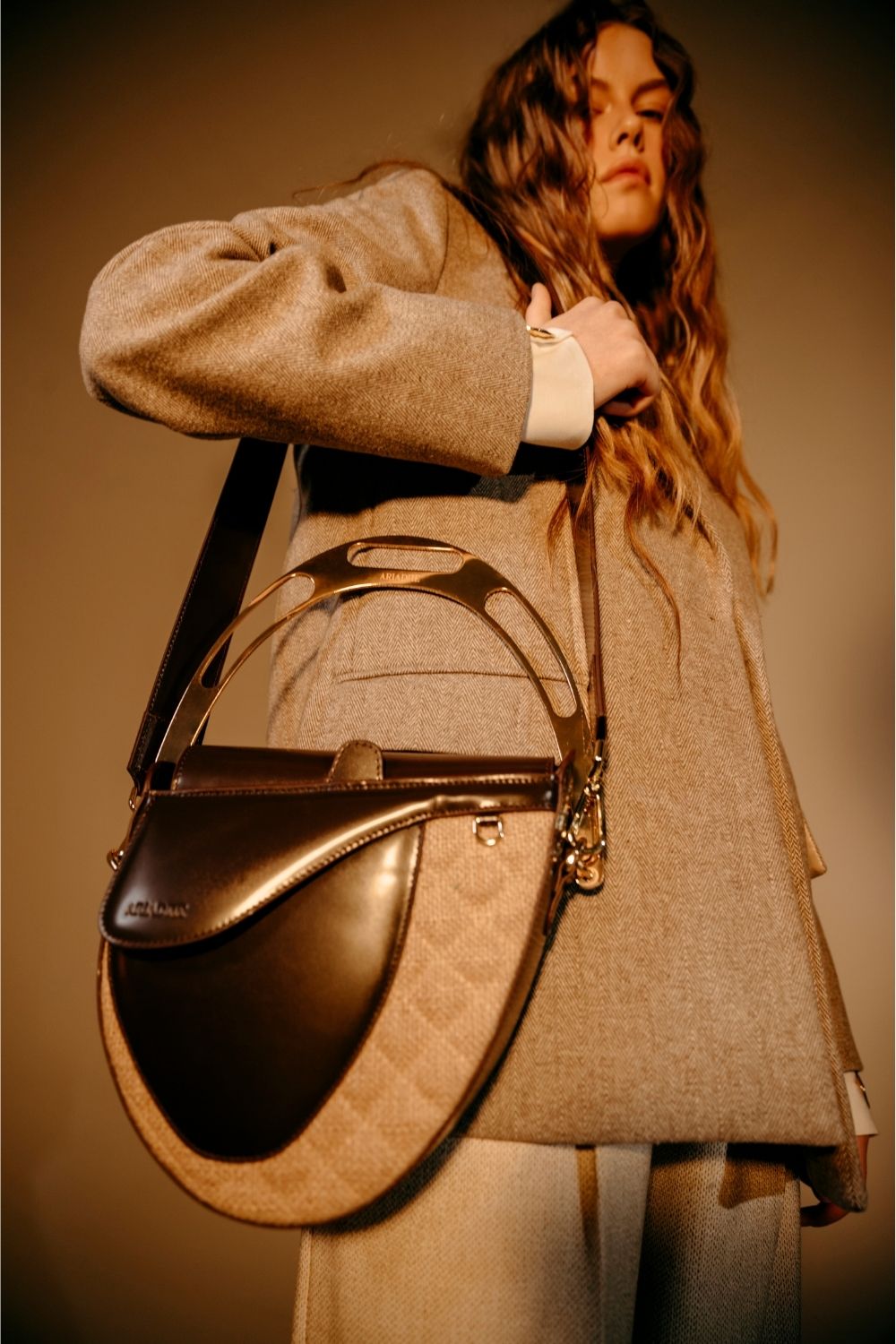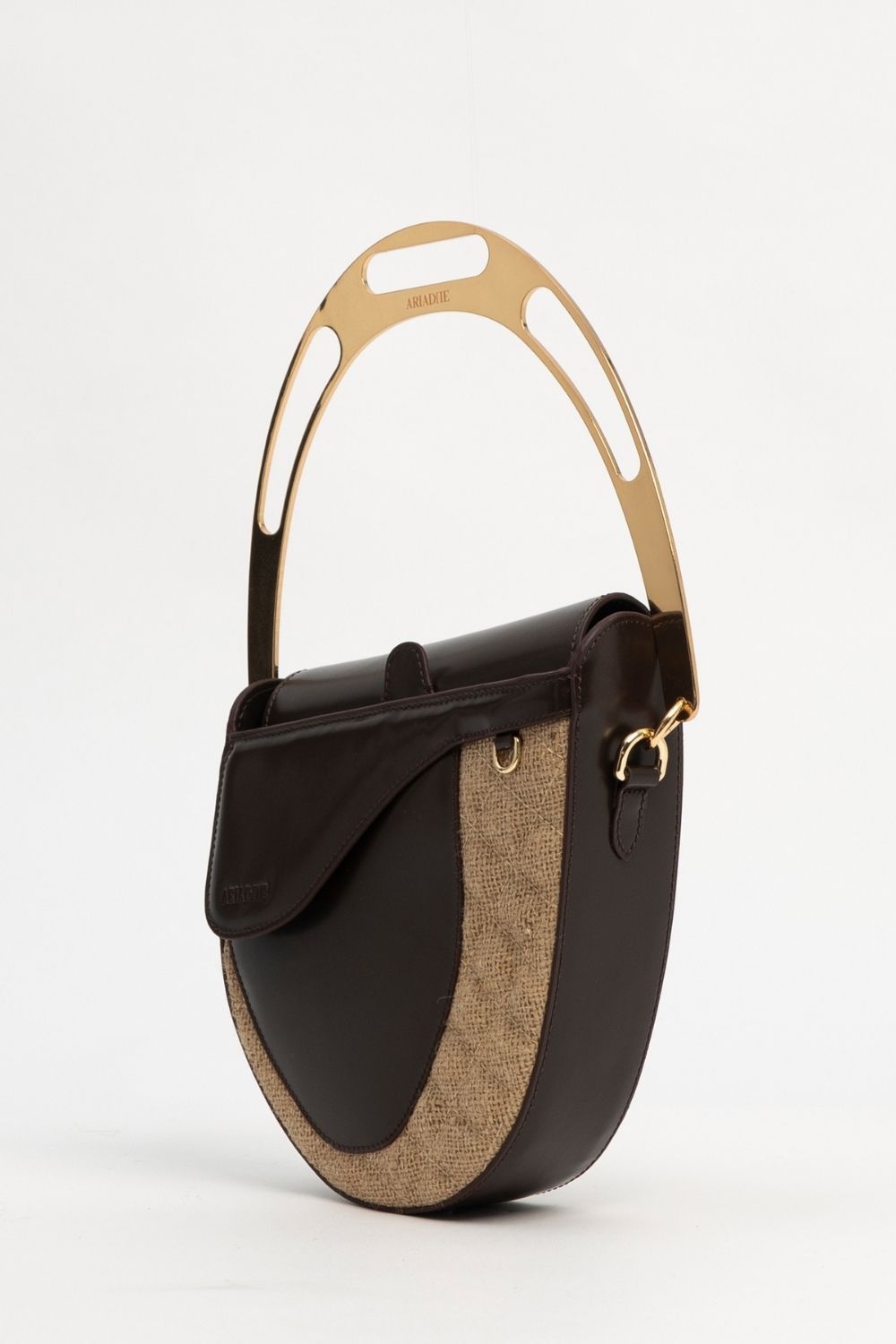 Helios, ışık saçan tacı ve atların çektiği arabasıyla Güneş’i simgeler. Bu çanta, üzengi formundaki parlak metal sapı ve eyer şeklindeki deri tasarımıyla bu ilhamı yansıtır. Kahve çuvalının ileri dönüşüm detayıyla birleşerek özgün Helios çantası ortaya çıkar.