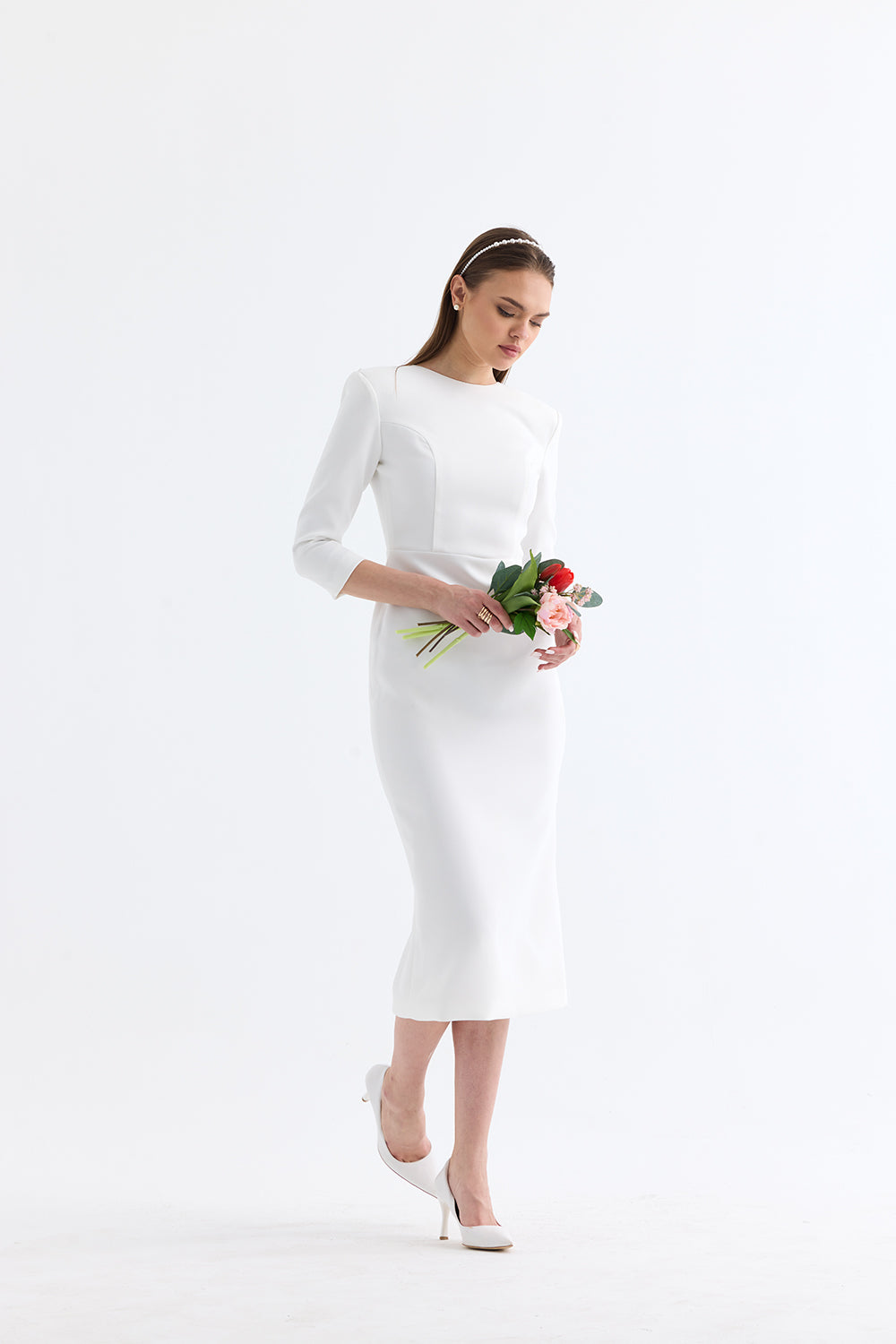 elbise, zarif ve sofistike bir görünüm arayanların tercihi olacak. Krep kumaşın