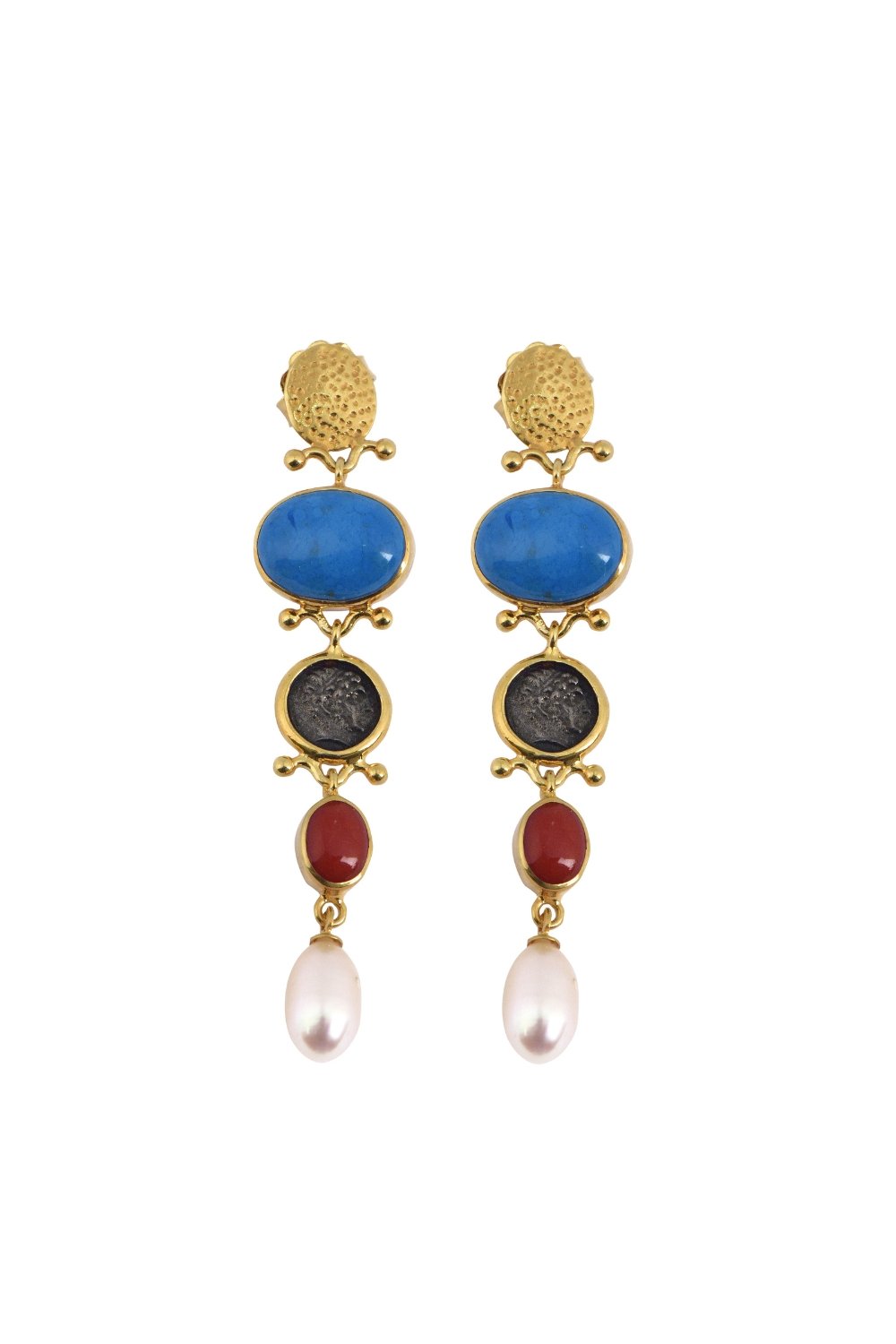 Gümüş Küpe | Turkuaz – Mercan – İnci Taşı