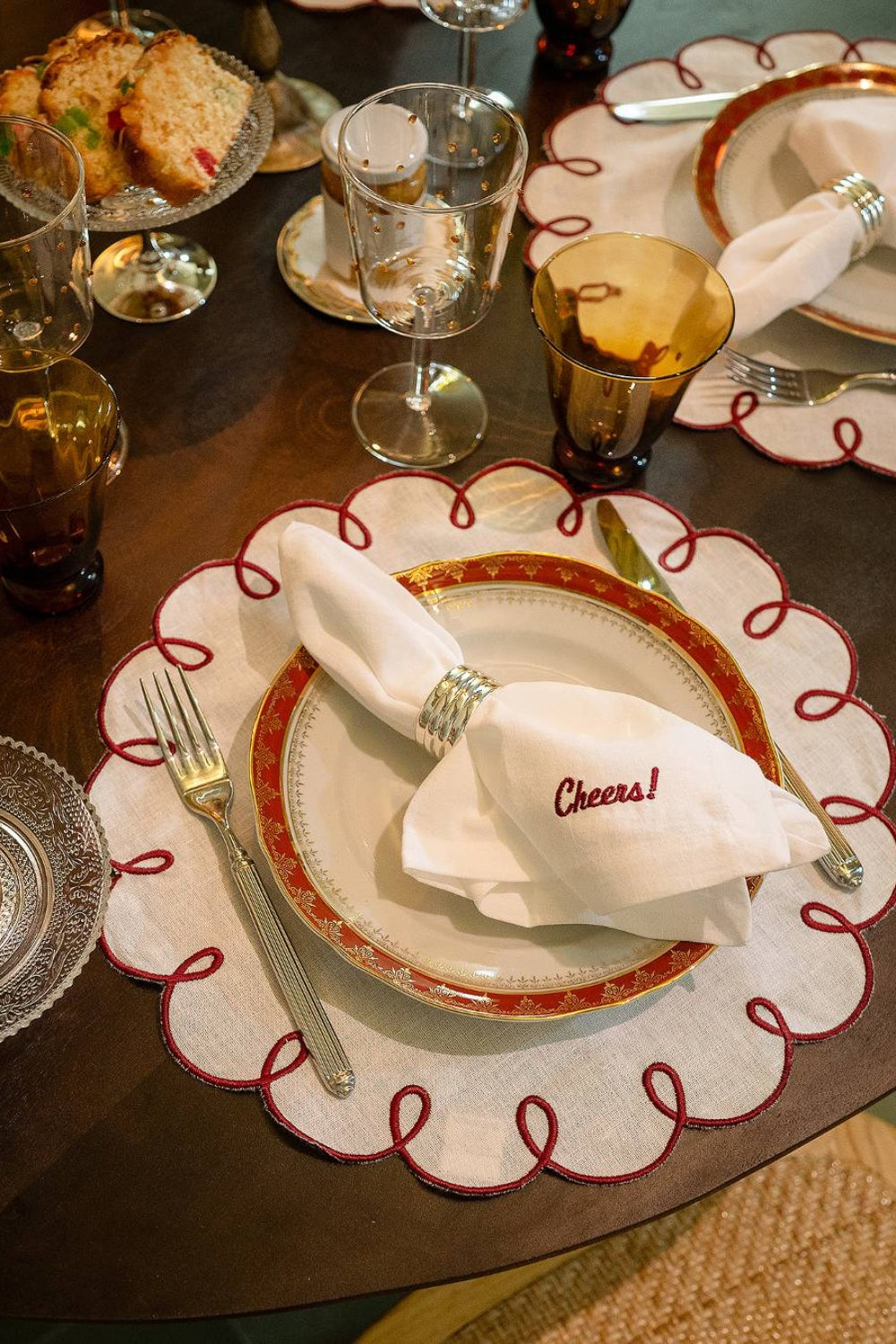 Lisboa Amerikan Servis & Peçete Seti – Beyaz / Bordo