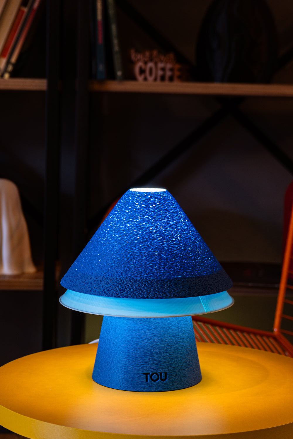 Bu masa lambası, mantar formundan esinlenerek tasarlanmış olup, dokulu mavi gövdesi ve organik hatlara sahip patel mavi başlığı ile sıcak ve davetkar bir aydınlatma sağlar. Minimal boyutları sayesinde çalışma masası, başucu ya da TV ünitesi gibi alanlarda şık bir dekoratif unsur olarak tercih edilebilir. Üretiminde kullanılan biyoplastikler, hem doğa dostu bir yaklaşımı destekler hem de çevreye uyumlu bir tasarım sunar. Hem estetik hem de sürdürülebilirliği bir araya getiren bu lamba, yaşam alanlarına zarif bir dokunuş katmak için ideal bir seçimdir.