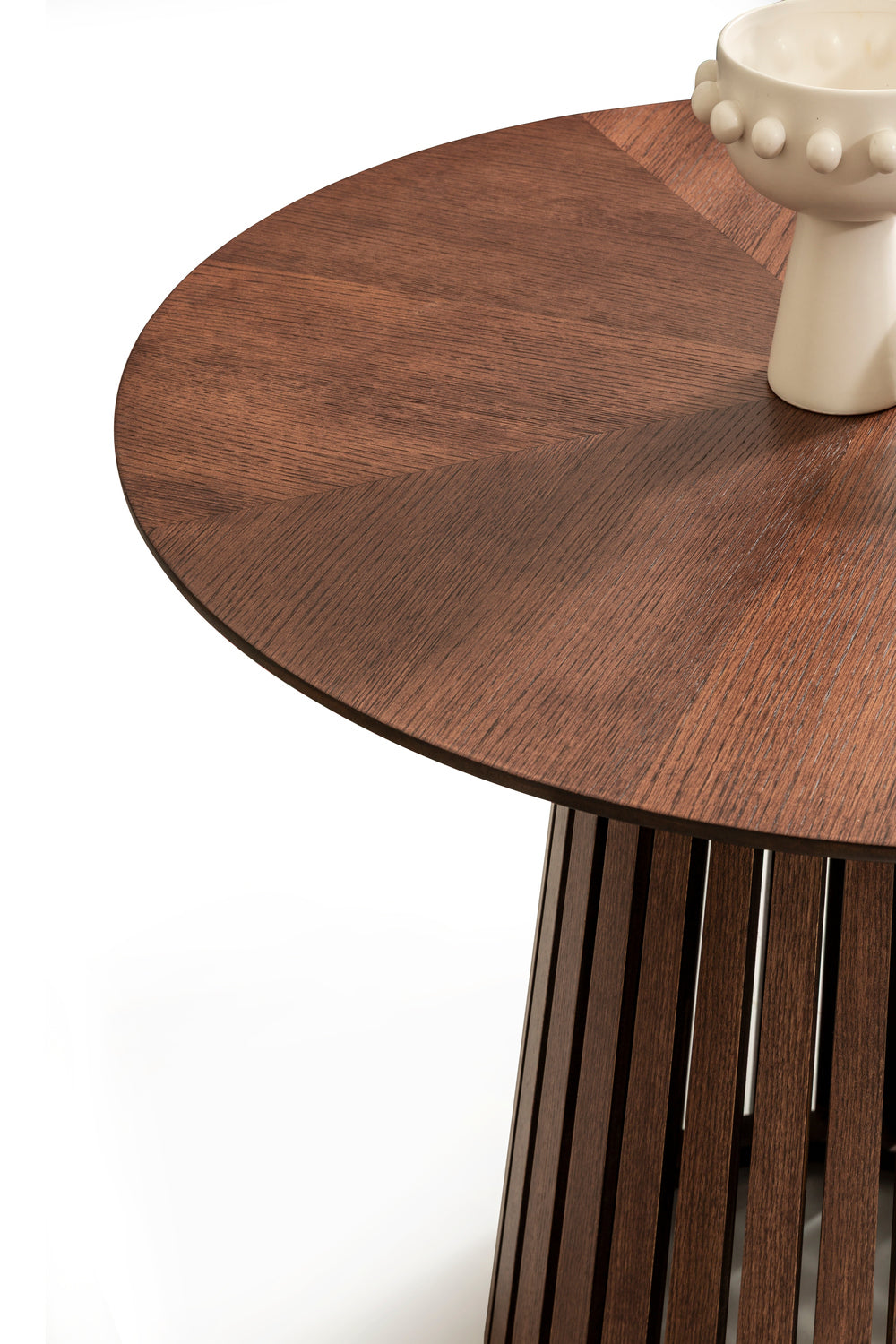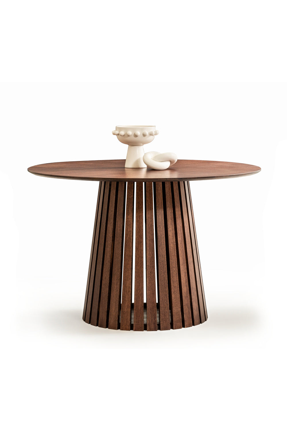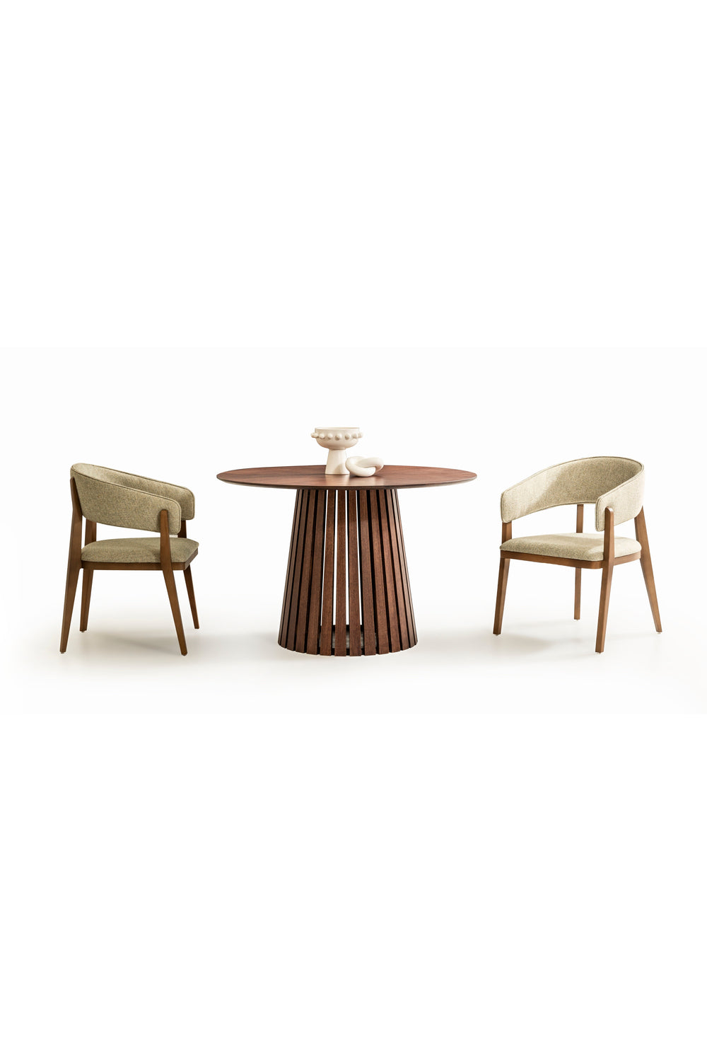 Focus Yuvarlak Yemek Masası – Ceviz Renkli Meşe ve Izgara Konik Ayak