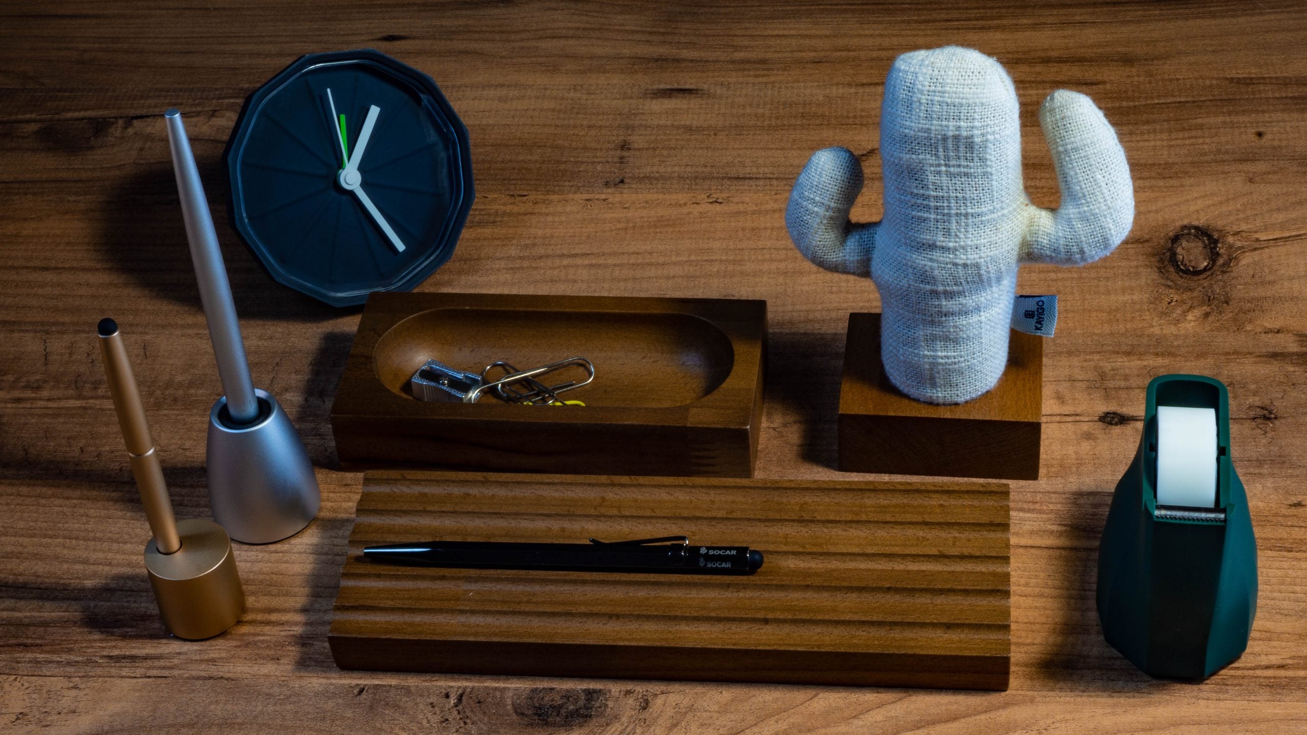 Çalışma masalarının üstünde biriken eşyaları sürekli aramaktan kurtaracak özel tasarım ahşap organizerler sizi dağınıklık ve karmaşadan uzaklaştırarak her şeyi rahatça bulmanızı sağlayacak. Ofisinizin havasını değiştiren aynı zamanda iş yerleri için kullanışlı bir hediye olan Kayigo Woody Üçlü Set masa üstü organizer fonksiyonelliği öne çıkarmanız için harika bir tercih olacaktır.