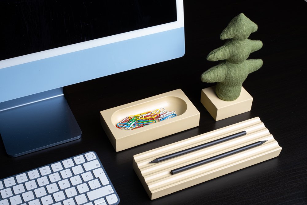 Masaüstünde stil sahibi bir düzenleyici arayanlar için Kayigo Siyah Woody Üçlü Set!Doğal malzemelerden üretilen bu set farklı kalemlerinizi sıralamak için yatay bir kalemliğe, küçük eşyalarınızı koyabileceğiniz hazneye ve lavanta dolgulu notluğa sahiptir. Lavanta Dolgulu çam, notlarınızı sağlıklı ve eğlenceli bir şekilde hatırlatacak. Antiviral ve sakinleştirici lavanta kokusunu yoğunlaştırmak için kaktüsünüzü sıkarak lavantaları ezin. Ofisinizin havasını değiştirerek çalışma hayatınızı renklendirecek olan bu set aynı zamanda yeni işe başlayacak arkadaşlarınız için de harika bir hediye olacaktır.