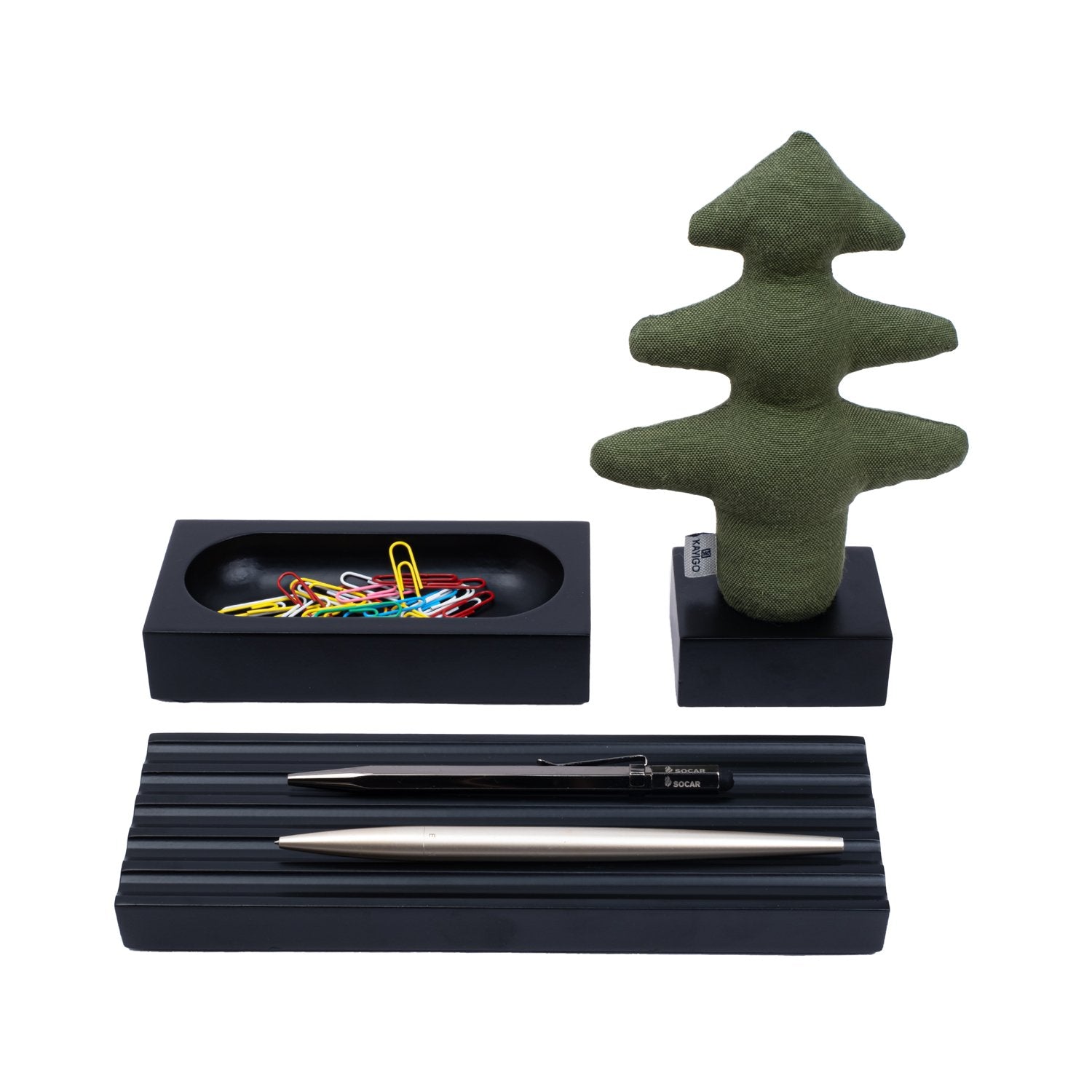 Masaüstünde stil sahibi bir düzenleyici arayanlar için Kayigo Woody Üçlü Set!Doğal malzemelerden üretilen bu set farklı kalemlerinizi sıralamak için yatay bir kalemliğe, küçük eşyalarınızı koyabileceğiniz hazneye ve lavanta dolgulu notluğa sahiptir. Lavanta Dolgulu Ağaç, notlarınızı sağlıklı ve eğlenceli bir şekilde hatırlatacak. Antiviral ve sakinleştirici lavanta kokusunu yoğunlaştırmak için ağacınızı sıkarak lavantaları ezin. Ofisinizin havasını değiştirerek çalışma hayatınızı renklendirecek olan bu set aynı zamanda yeni işe başlayacak arkadaşlarınız için de harika bir hediye olacaktır.