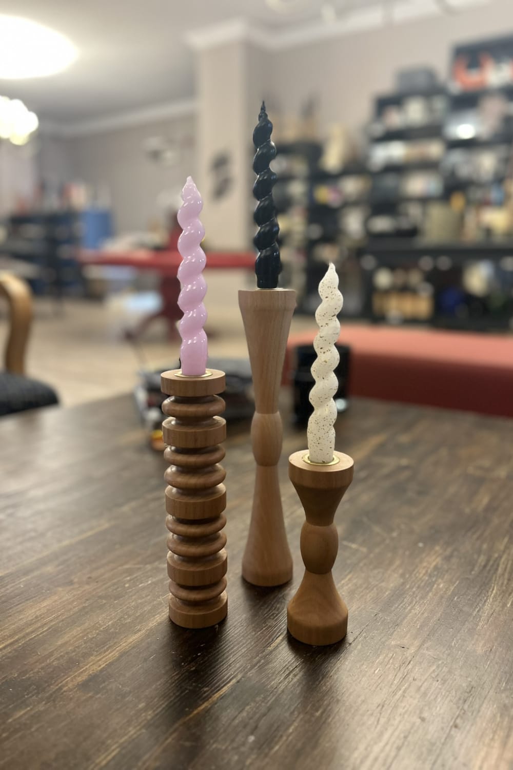 Bella 3'lü Ahşap Şamdan & Mumluk