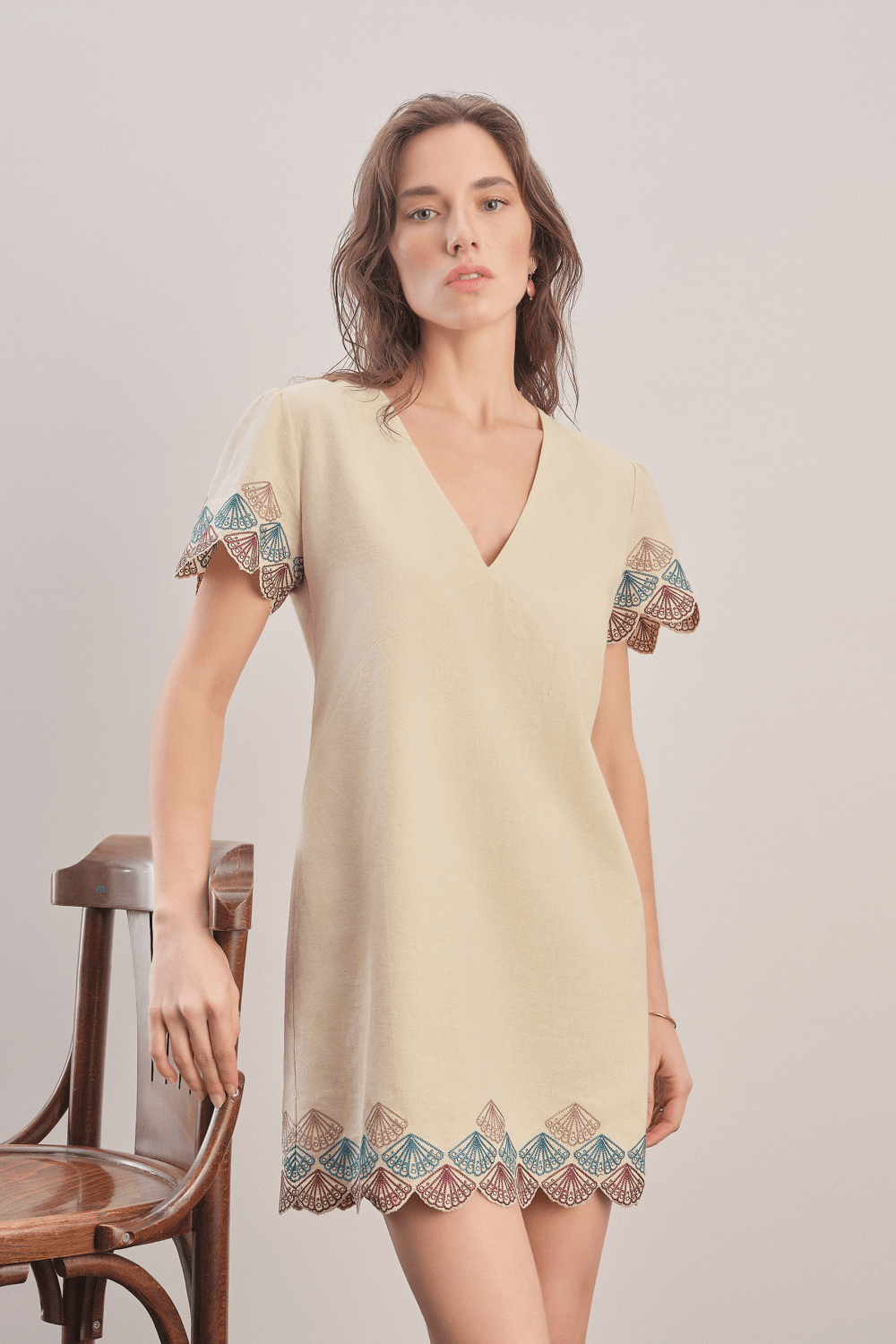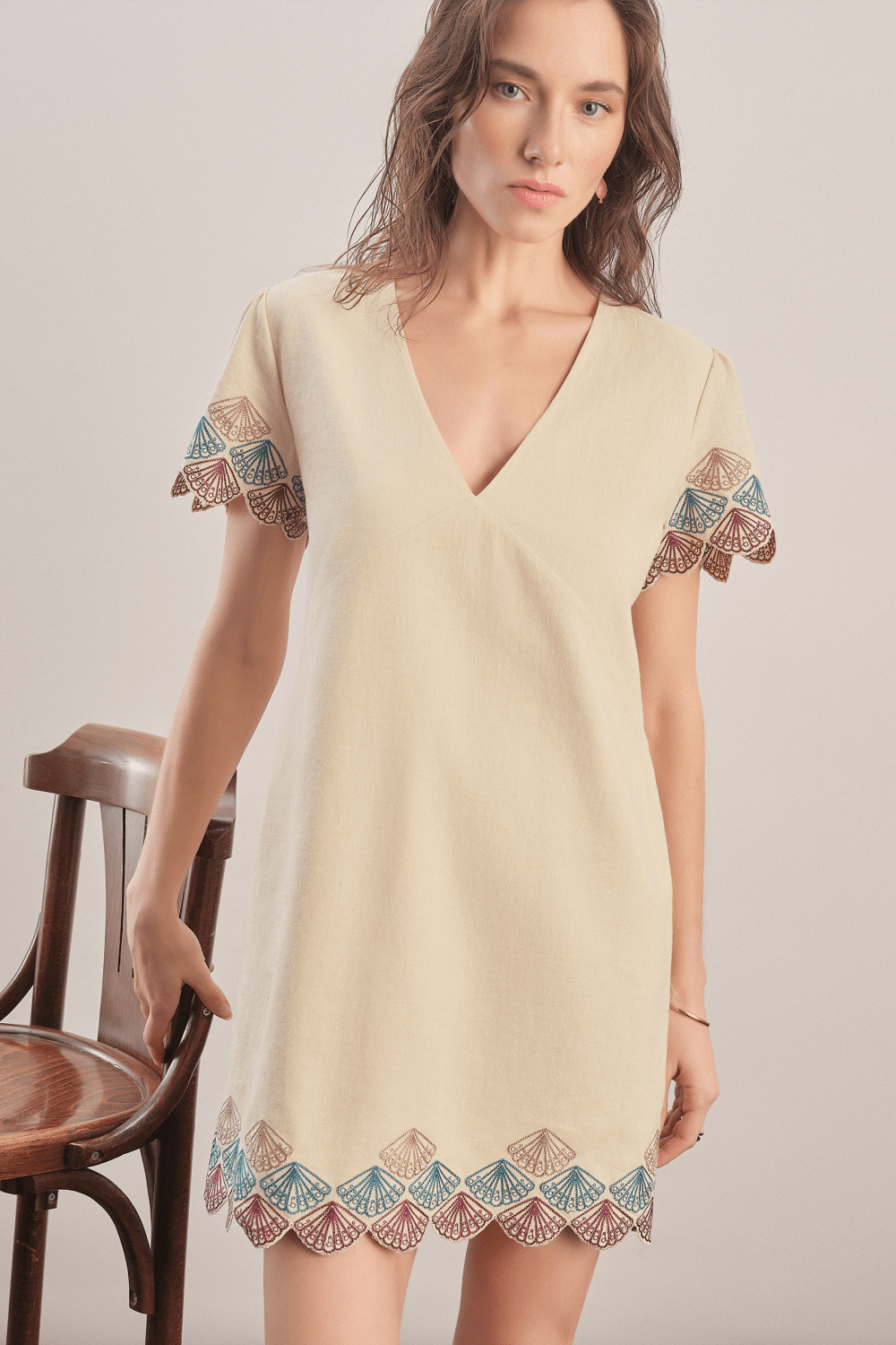 Oyster Nakışlı Mini Elbise