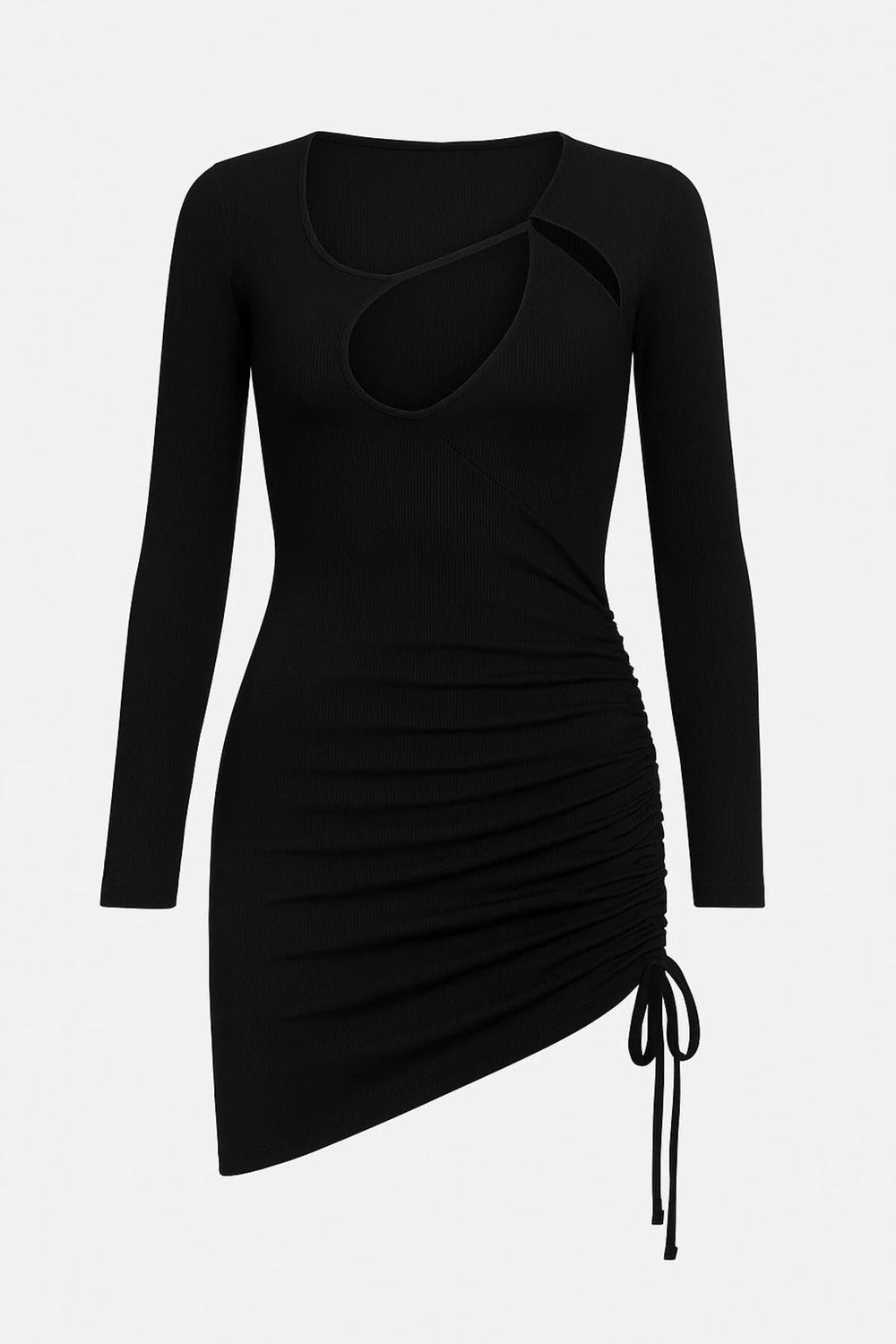 Asimetrik Pencere Detaylı Mini Kaşkorse Elbise
