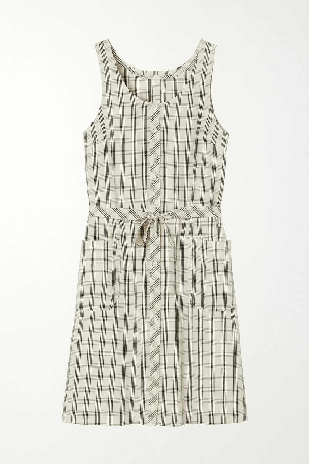 Beli Tünel Detaylı Önden Düğmeli Ekoseli Elbise