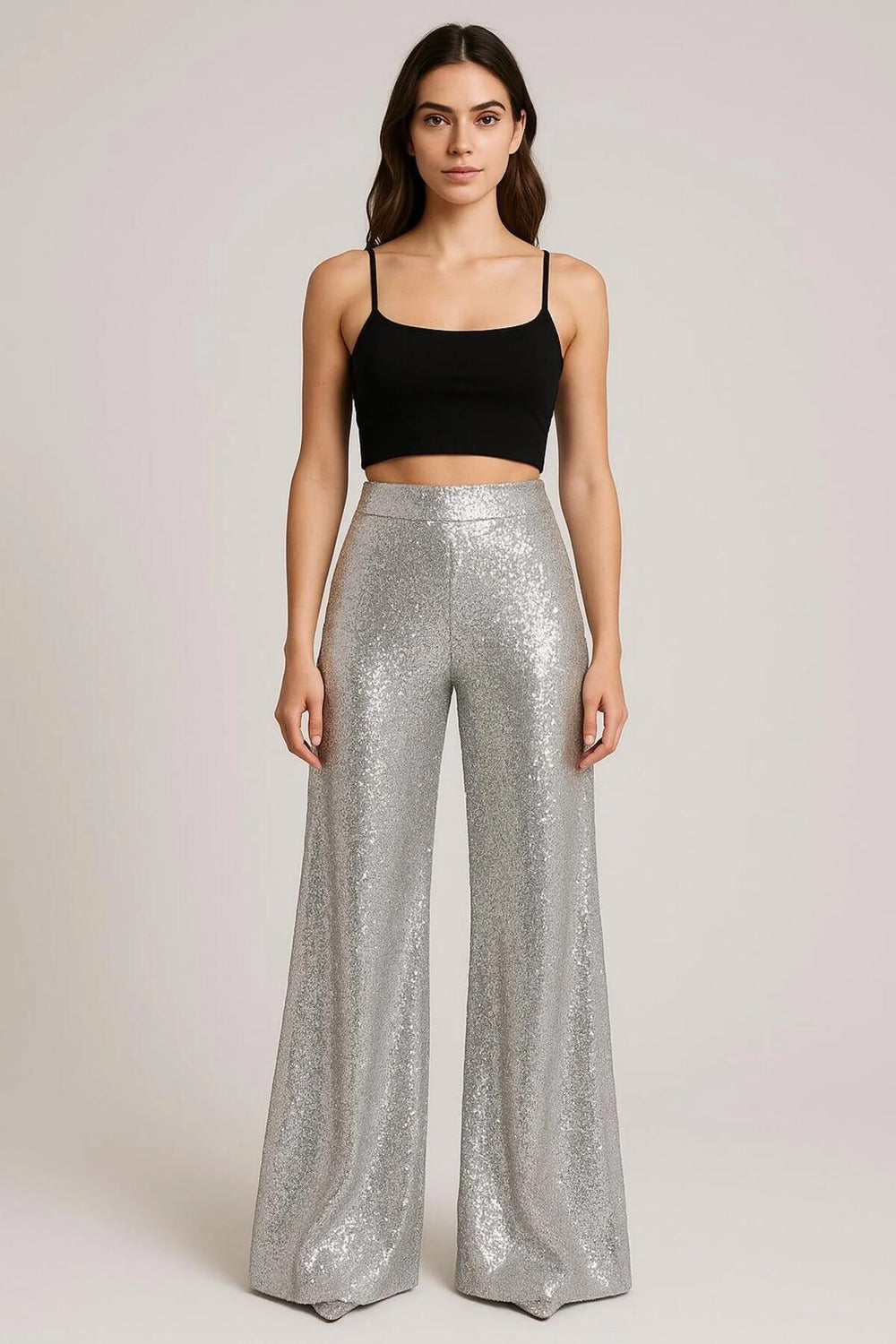 Yüksek Bel & Geniş Paça Silver Payet Pantolon