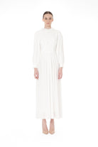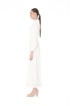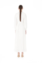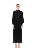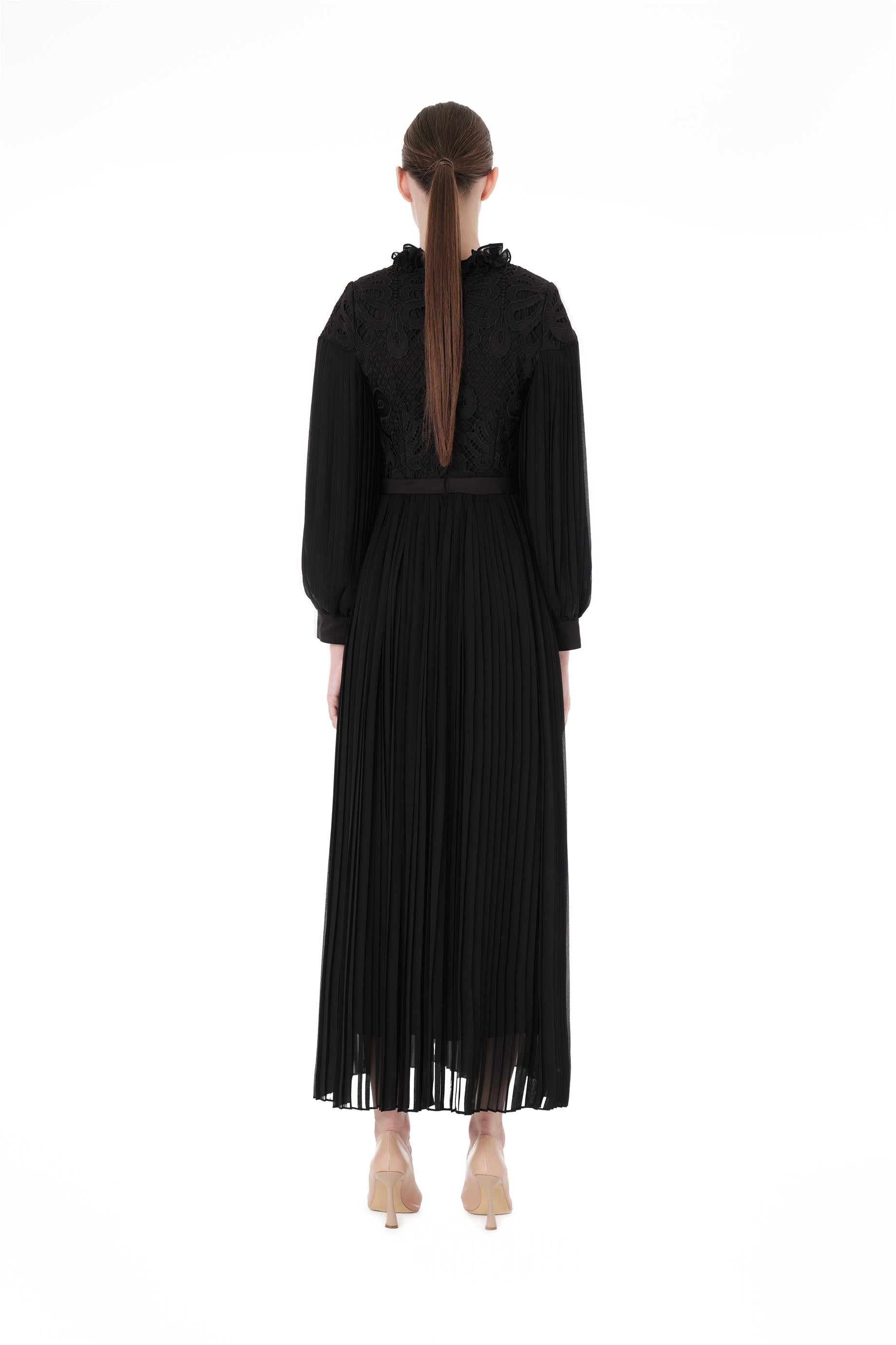 - Ürün Açıklaması: Üst bedeni ve kol parçası dantel kumaş detaylı. Süs kemer detaylı. Arka bedenden fermuar kapamalı. Kol ve eteği pliseli. Astarlı uzun elbise.Bedenler arasında 4 cm fark bulunmaktadır.