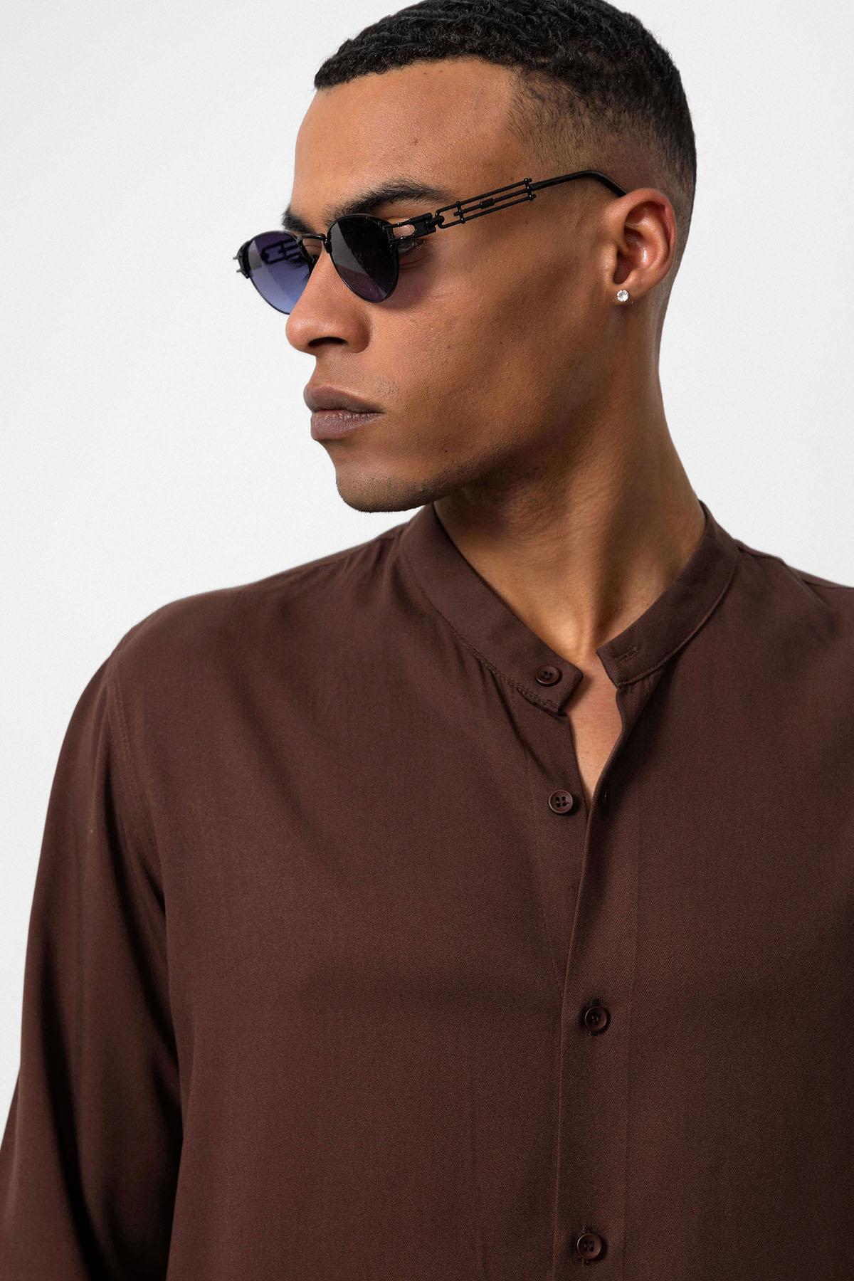 Kahve Hakim Yaka Regular Fit Erkek Gömlek