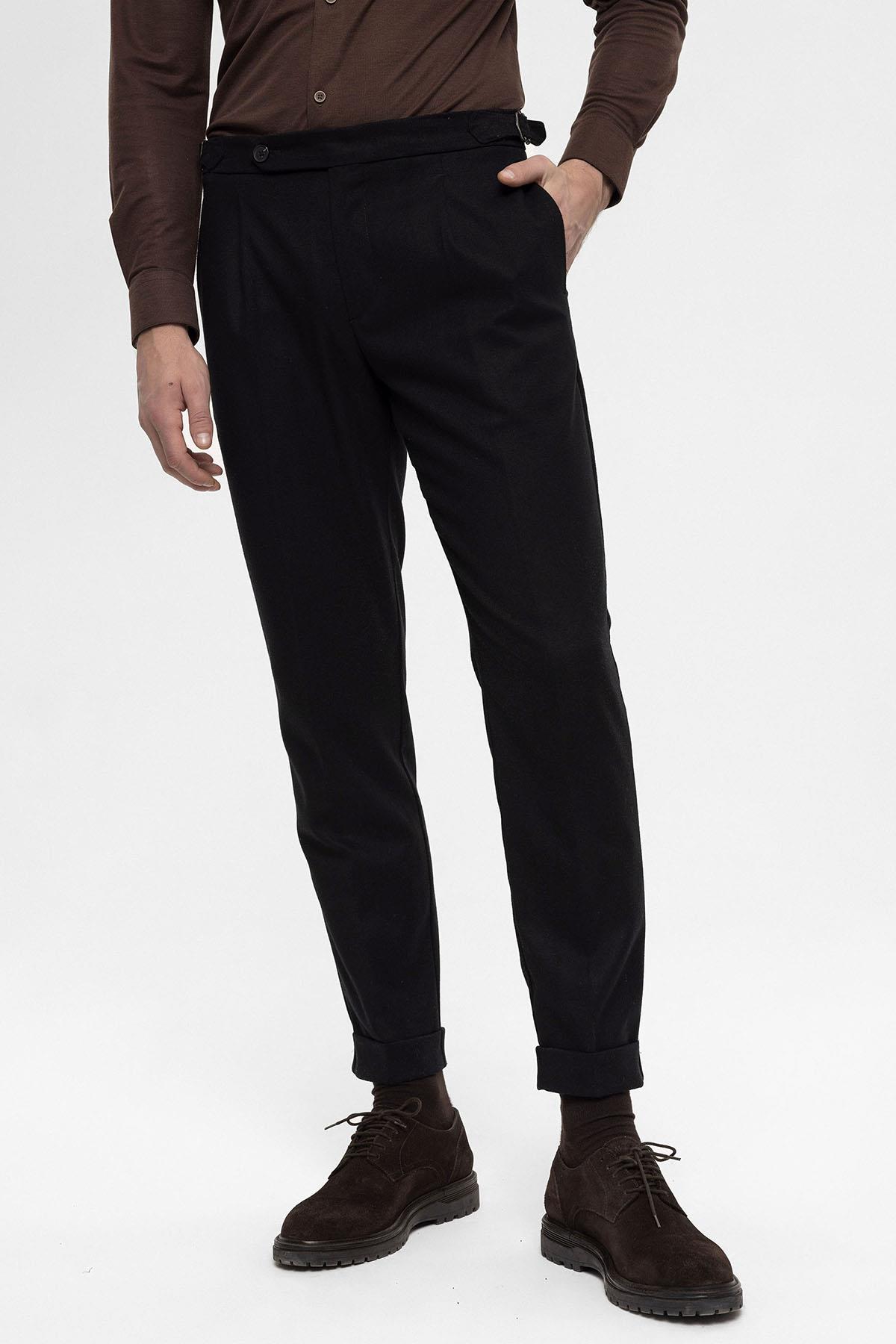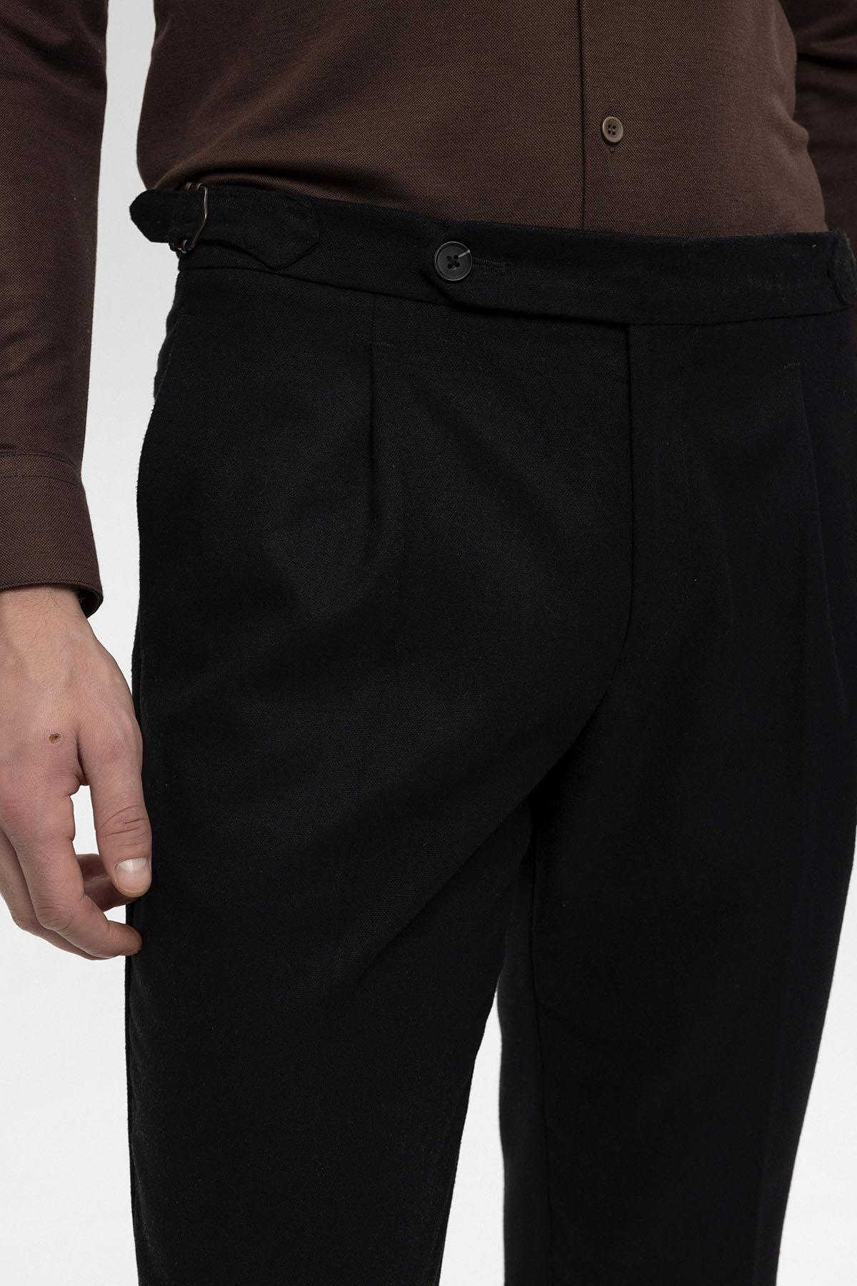 Siyah Yüksek Bel Pileli Erkek Pantolon
