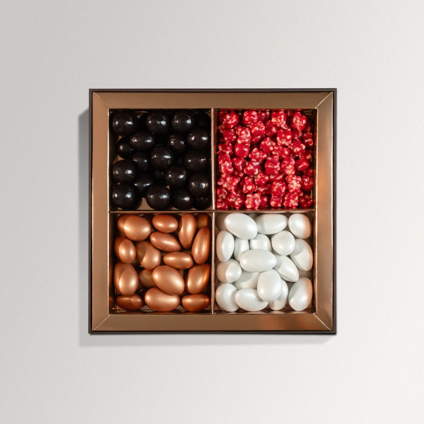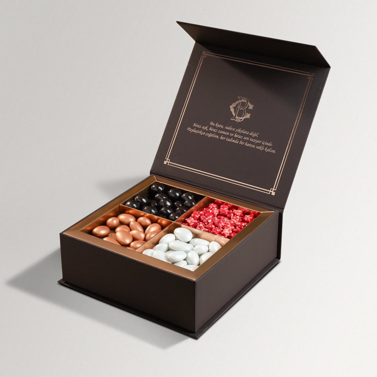 Birbirinden renkli ve farklı aromalara sahip drajeler, tatlı atıştırmalıklar arasında favoriniz olacak Hem görsel olarak cezbedici hem de lezzetli olan bu karışık drajeler özel anlarınızı tatlandırmak için harika bir seçenektirİçindekiler : Bitter Çikolatalı Fındıklı, Bitter Çikolatalı Narlı, Sütlü Çikolatalı Bademli